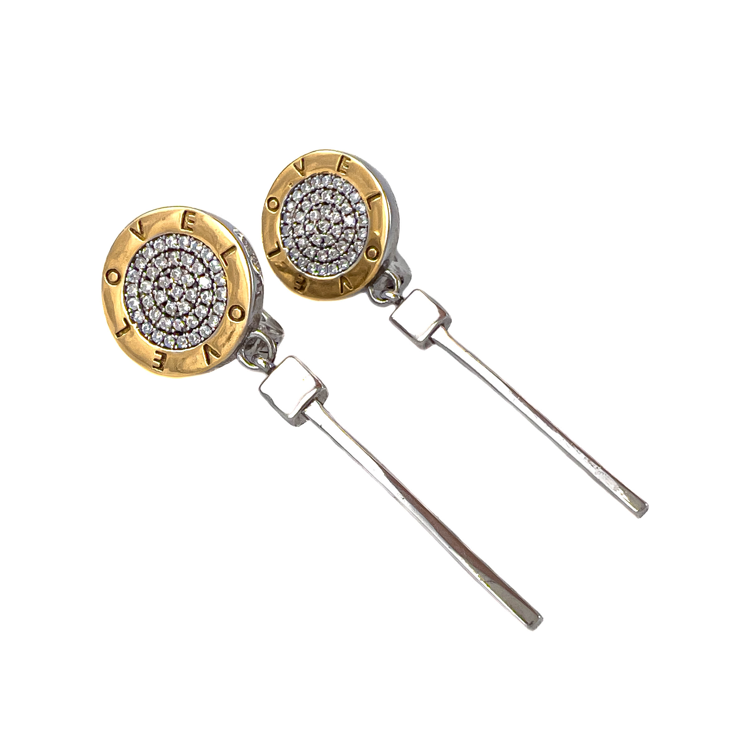 Длинные серебряные серьги с сиянием цирконов добавят утонченности и станут выразительной деталью женственного образа. Надпись LOVE, акцентно выделенная позолотой, переводится с анлийского «Любовь» и несомненно притягивает взгляд к модному современному украшению. Приобретайте привлекательные серебряные серьги по выгодным ценам в магазинах Мир Золота.