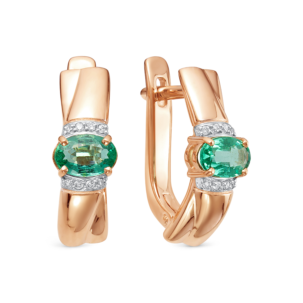 Элегантные серьги с натуральными изумрудами и бриллиантами выполнены из красного золота 585 пробы. Великолепное украшение с изысканным сиянием драгоценных камней станет ярким и стильным дополнением безупречного женского образа. Практичный и надежный английский замок комфортен в использовании. Приобретайте серьги по выгодным ценам в магазинах Мир Золота.