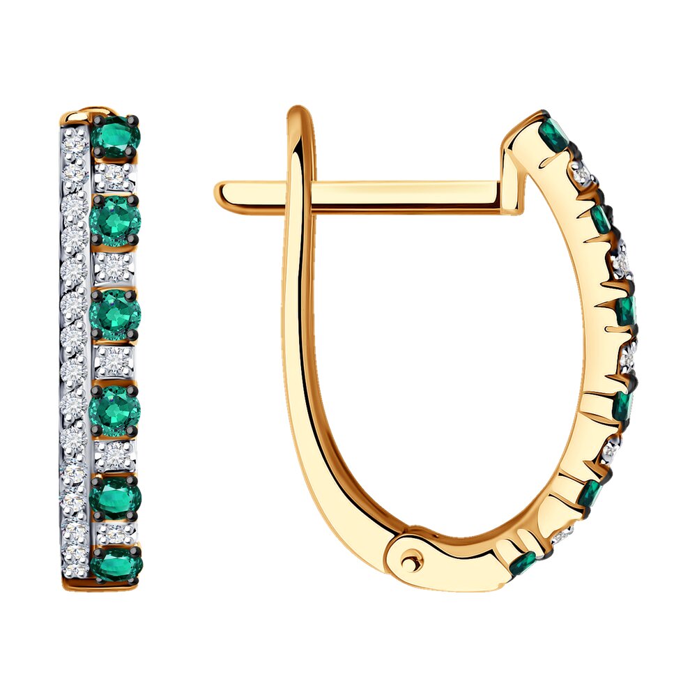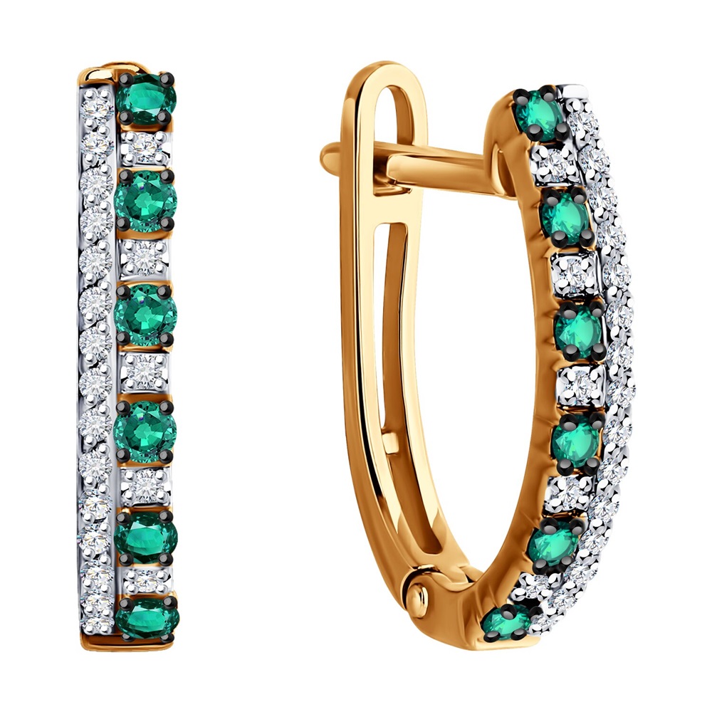 Серьги из красного золота 585 пробы с дорожками натуральных изумрудов и бриллиантов являются отражением женственности и элегантности. Яркий насыщенный оттенок натуральных изумрудов привлекает внимание, чистый кристальный блеск бриллиантов эффектно подчеркивает их пленительное сияние. Приобретайте серьги с комфортным английским замком по выгодным ценам в магазинах Мир Золота.