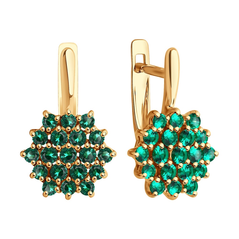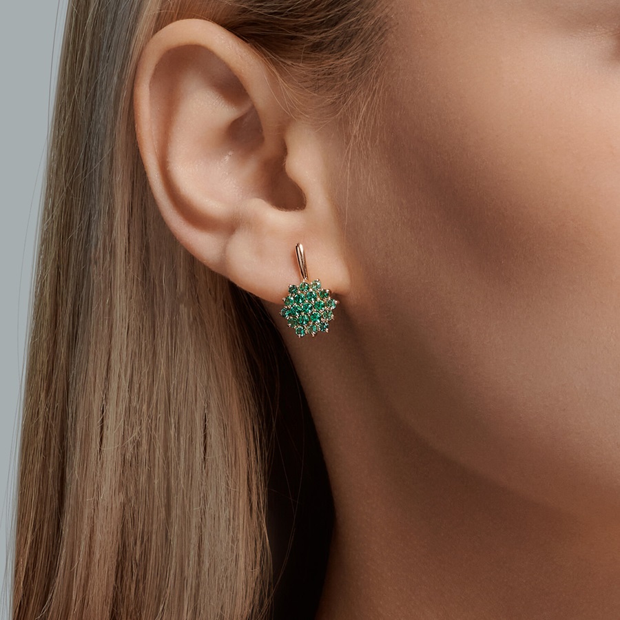 Изысканные серьги из красного золота 585 пробы с россыпью гидротермальных изумрудов покоряют своей красотой и дизайном. Великолепное сочетание благородного золота с насыщенным блеском прекрасных изумрудов завораживает взгляд. Украшение идеально дополнит вечерний или праздничный образ, и станет замечательным подарком по любому поводу. Приобретайте серьги с комфортным английским замком по выгодной цене в магазинах Мир Золота.