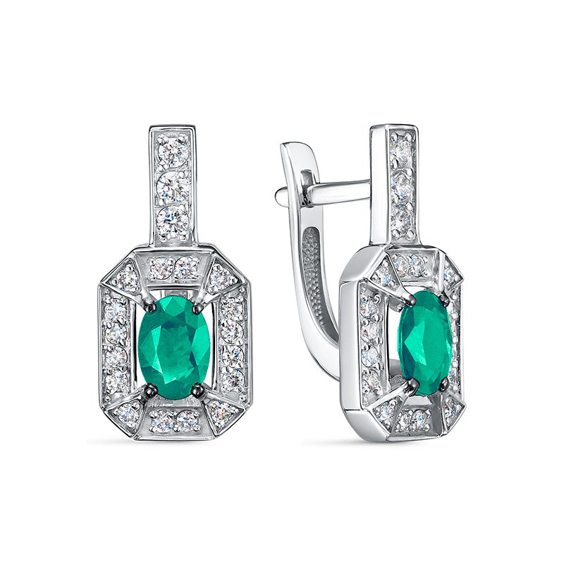Элегантные серьги из белого золота 585 пробы с великолепными изумрудами и дорожками из натуральных бриллиантов покоряют своей красотой и изысканным блеском. Холодный оттенок золота эффектно подчеркивает благородное сияние драгоценных камней. Яркий аксессуар стильно смотрится, и станет достойным подарком на любой праздник. Тип замка - английский. Приобретайте серьги по выгодным ценам в магазинах Мир Золота.