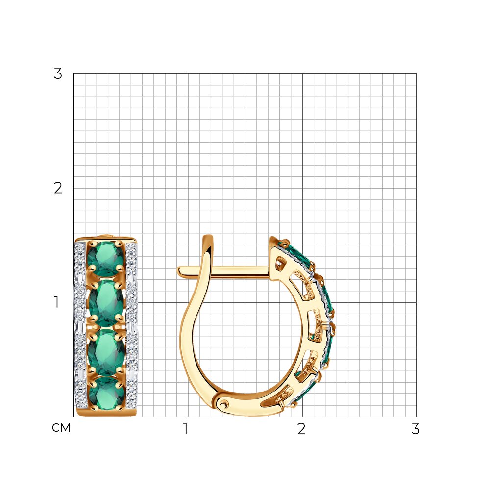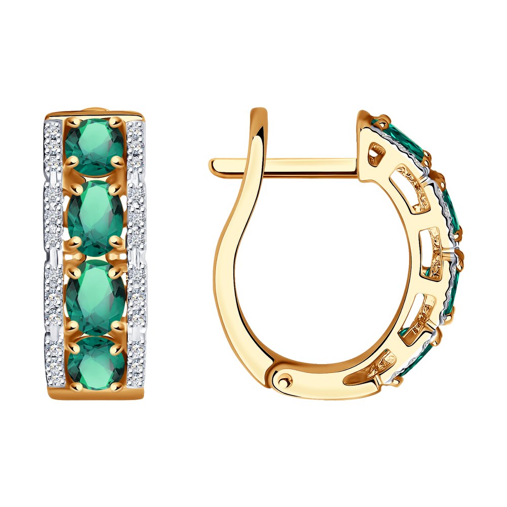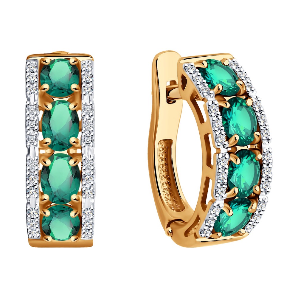 Стильные серьги из красного золота 585 пробы с дорожками великолепных крупных изумрудов и сияющих бриллиантов смотрятся достойно и благородно. Элегантное украшение с роскошным блеском драгоценных камней идеально дополнит вечерние или праздничные наряды, и будет особенно эффектно смотреться в комплекте с кольцом. Приобретайте серьги в подарок по привлекательной цене в магазинах Мир Золота.