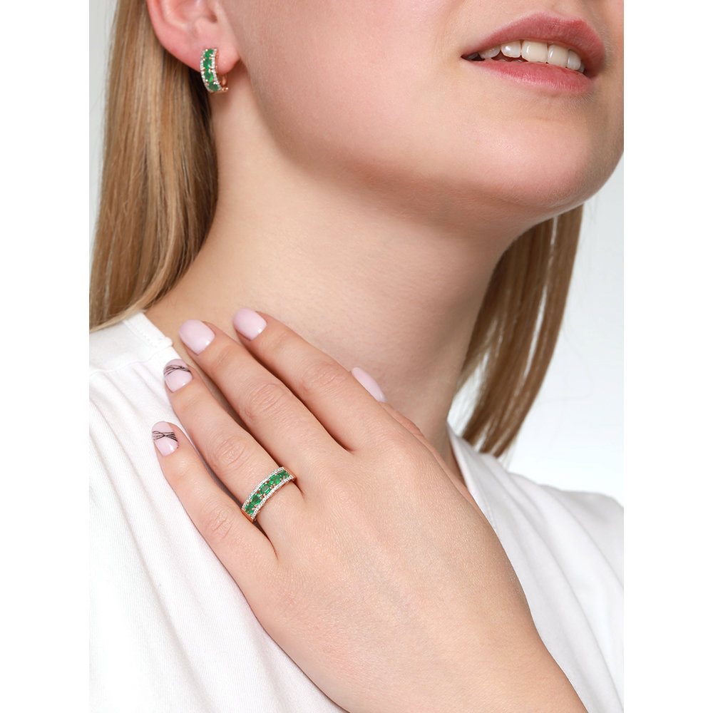 —Серьги из красного золота с изумрудами и бриллиантами