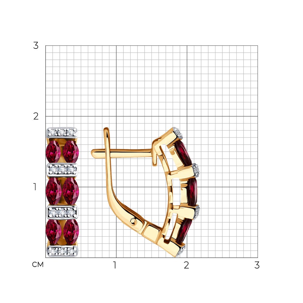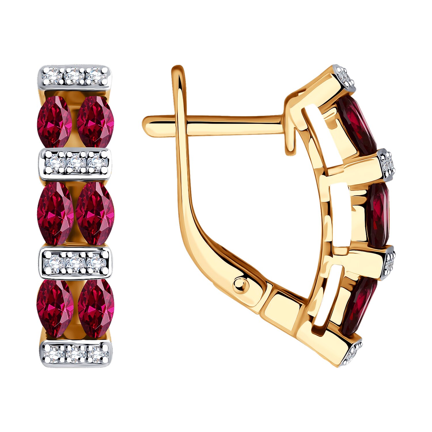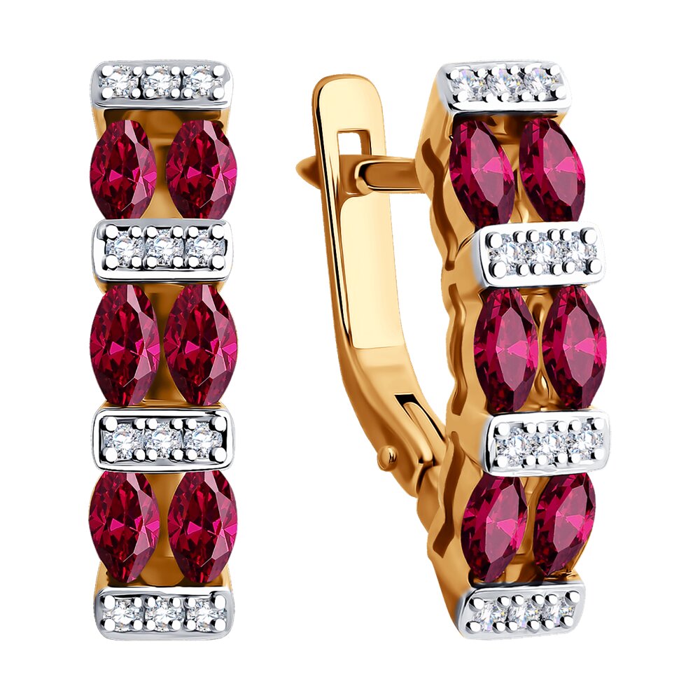 Изысканные серьги из красного золота 585 пробы с великолепными рубинами и кристальными бриллиантами подчеркнут истинную женственность и очарование владелицы. Великолепное сочетание прекрасных рубинов утонченной формы огранки и сияющих бриллиантов завораживает взгляд, элегантное украшение будет идеальным выбором для вечернего и праздничного образа. Приобретайте серьги в подарок по выгодной цене в магазинах Мир Золота.