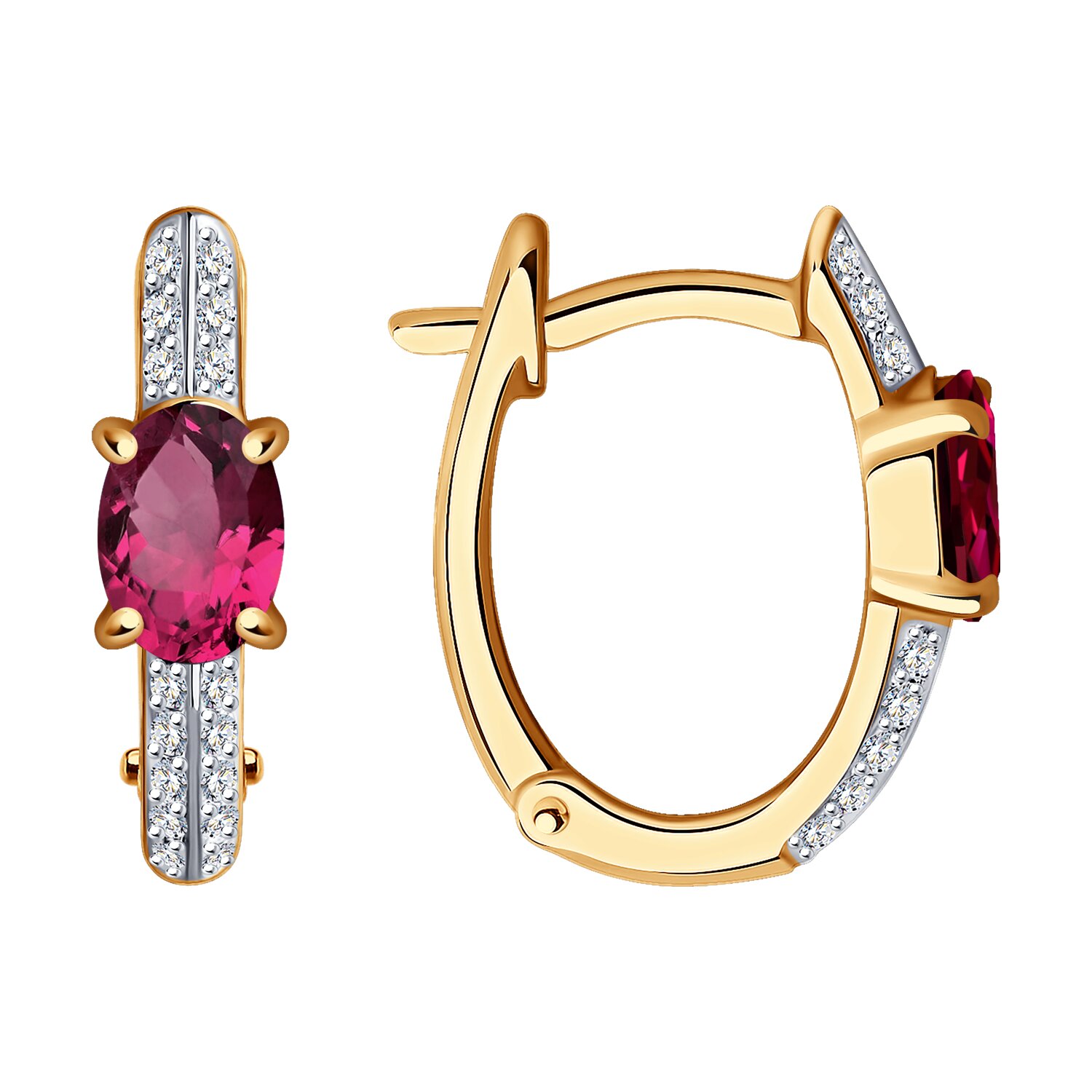 Утонченные серьги с натуральными рубинами и дорожками прозрачных бриллиантов выполнены из красного золота 585 пробы. Великолепные рубины насыщенного оттенка в сиянии кристальных бриллиантов являются главным акцентом в образе украшения. Изящные серьги с завораживающим блеском драгоценных камней будут прекрасным подарком для любой женщины. Приобретайте украшение по выгодным ценам в магазинах Мир Золота.