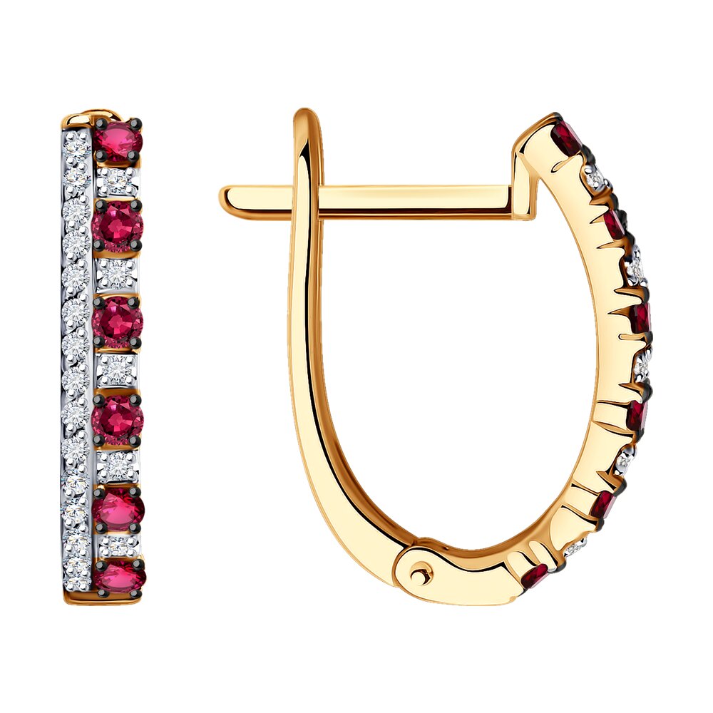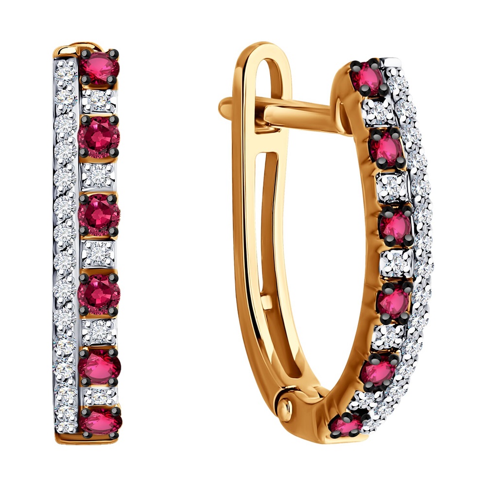 Серьги из красного золота 585 пробы с дорожками натуральных рубинов и сверкающих бриллиантов являются отражением женственности и элегантности. Яркий насыщенный оттенок прекрасных рубинов привлекает внимание, чистый кристальный блеск бриллиантов эффектно подчеркивает их благородное сияние. Приобретайте серьги с комфортным английским замком по выгодным ценам в магазинах Мир Золота.