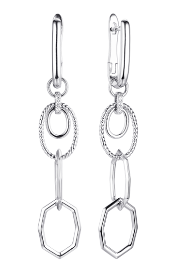 Эффектные серебряные серьги с фианитами помогут вам создать свой собственный уникальный образ. Подвесная часть украшения остается подвижной - свет будет делать серьги яркими и заметными. Такое украшение идеально подойдет для вечернего выхода. Тип замка - английский, самый надежный и удобный. Порадуйте себя или купите в подарок эти изысканные серьги в магазинах Мир Золота.