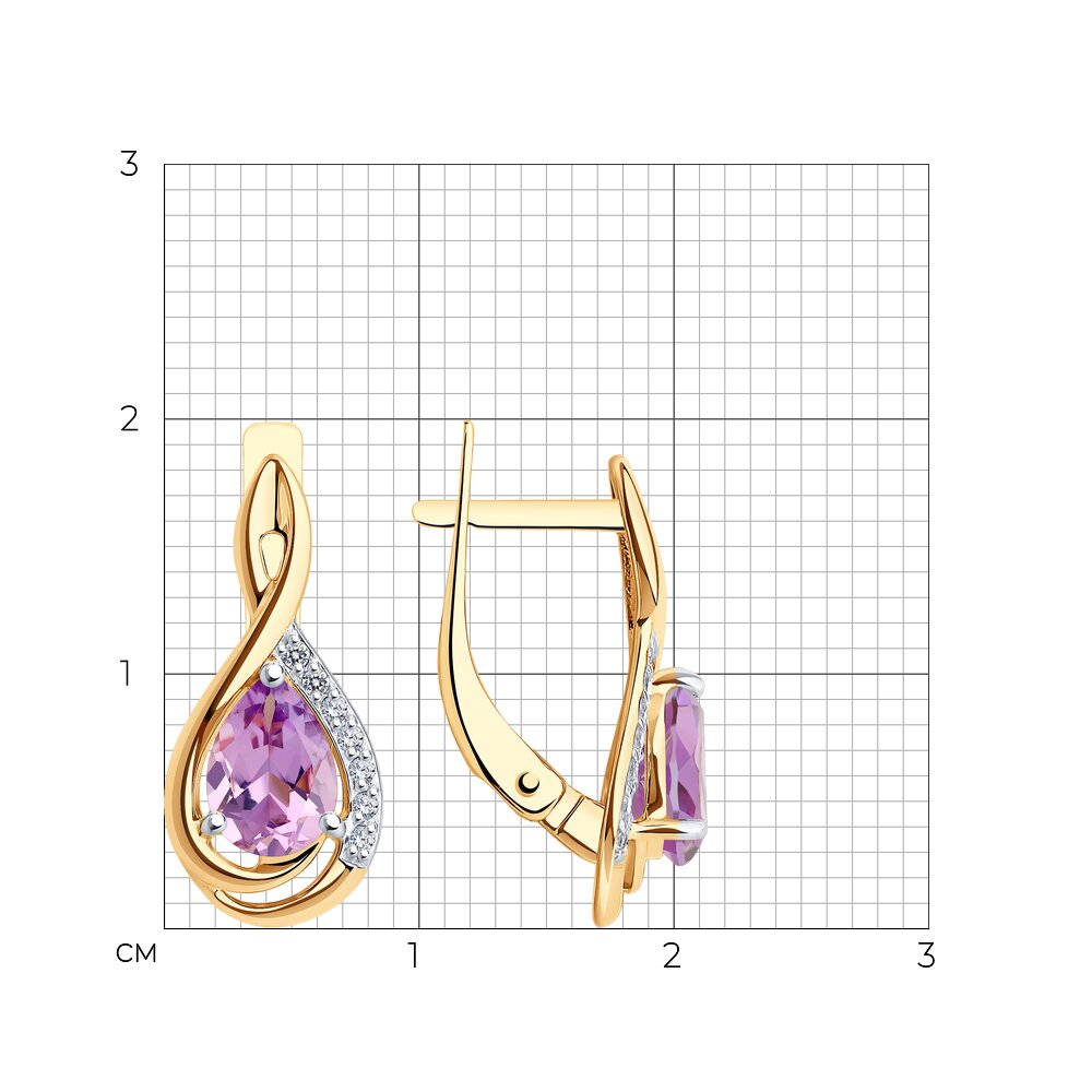 Женские серьги из красного золота 585 пробы с фианитами и натуральными аметистами светлого оттенка порадуют своим блеском и изящным дизайном. Замечательные серьги с удобным и надежным английским замком комфортны в носке, и станут изысканным дополнением повседневного и классического образа. Приобретайте ювелирное украшение для прекрасного подарка по выгодной цене в магазинах Мир Золота.
