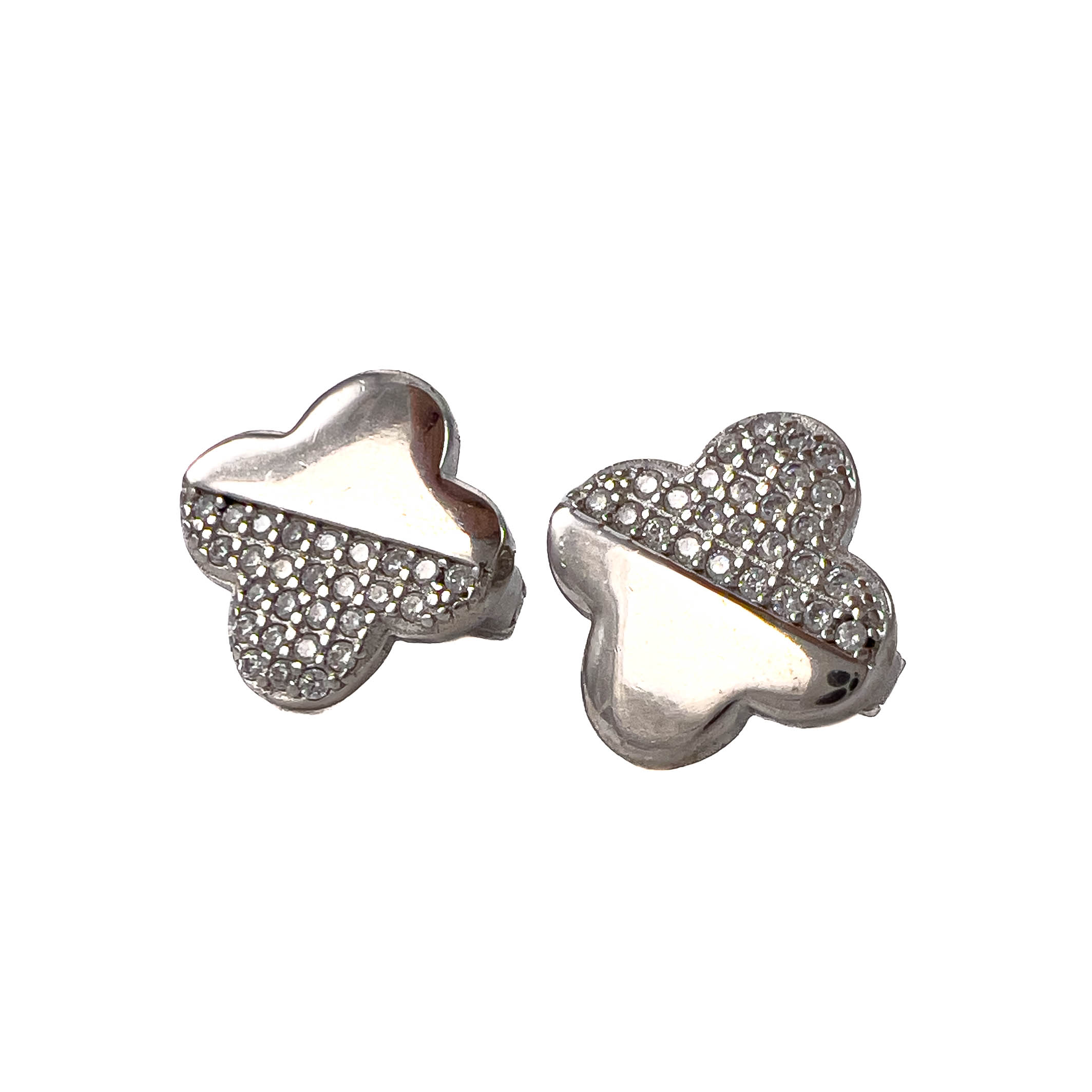 Нежные серебряные серьги в форме четырехлистного клевера с композицией из прозрачных цирконов сделают женский образ еще ярче и привлекательнее. Акцентное и нарядное украшение притягивает к себе внимание и подчеркнет истинную женственность и индивидуальность владелицы. Приобретайте ювелирное украшение по выгодным ценам в магазинах Мир Золота.