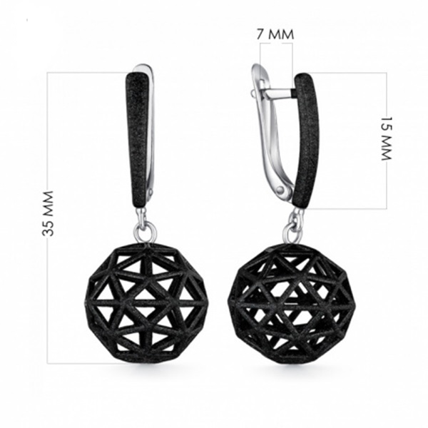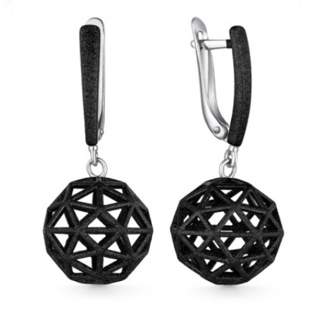 Серьги с подвесками объемного ювелирного дизайна в стиле параметризма выполнены из родированного серебра 925 пробы с уникальной черной эмалью. Выразительное украшение с фактурной эмалью отлично впишется в стильные современные образы, и понравится поклонницам оригинальных ювелирных аксессуаров. Тип замка - английский. Приобретайте изысканное украшение по выгодной цене в магазинах Мир Золота.