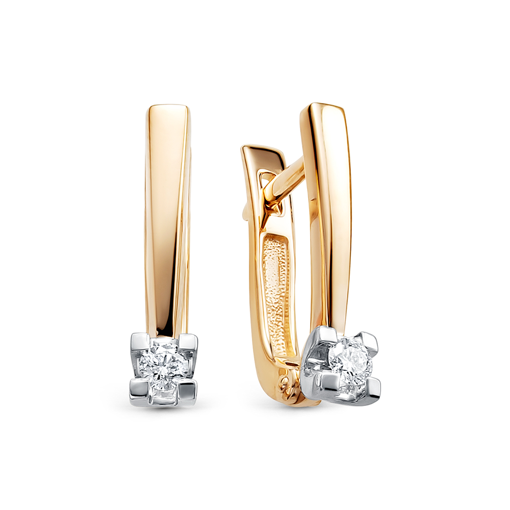 Серьги из красного золота 595 пробы с драгоценными бриллиантами, подчеркнутыми вставками из белого золота, великолепно впишутся в повседневный стиль. Привлекательные серьги универсального дизайна станут отличным вариантом базового украшения, уместного в любой ситуации. Тип замка - английский, практичный и надежный в использовании. Приобретайте серьги по выгодным ценам в магазинах Мир Золота.