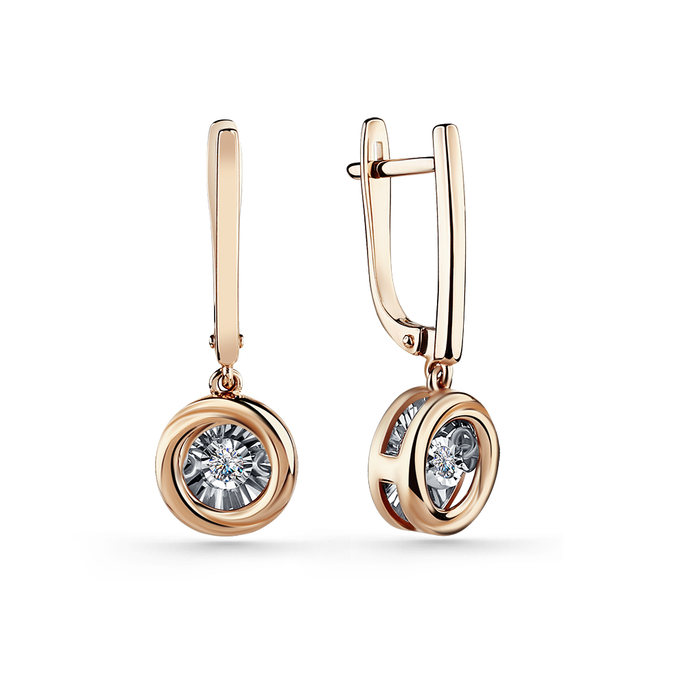 Серьги из красного золота 585 пробы с подвесками с «танцующими» бриллиантами подчеркнут красоту и женственность обладательницы. Драгоценные бриллианты с подвижным креплением завораживают своим игривым сиянием, и станут яркой изюминкой современного образа. Приобретайте серьги с комфортным английским замком по привлекательной цене в магазинах Мир Золота.