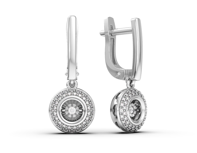 Стильные серьги из белого золота с подвесками с россыпью драгоценных бриллиантов станут эффектным завершением современного образа. Центральные вставки с «танцующими» бриллиантами завораживают своим переливчатым сиянием, холодный оттенок золота выгодно подчеркивает чистый кристальный блеск натуральных камней. Приобретайте элегантные серьги в подарок по выгодным ценам в магазинах Мир Золота.