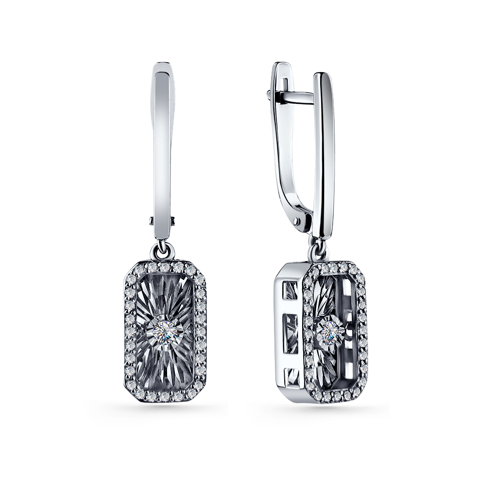 Эффектные серьги из белого золота 585 пробы с подвесками с драгоценными бриллиантами понравятся поклонницам крупных ювелирных украшений. «Танцующие» бриллианты с подвижным креплением, подчеркнутые блеском алмазной грани, покоряют своим завораживающим сиянием, и, непременно, привлекут внимание окружающих. Тип замка - английский. Приобретайте элегантные серьги по выгодным ценам в магазинах Мир Золота.