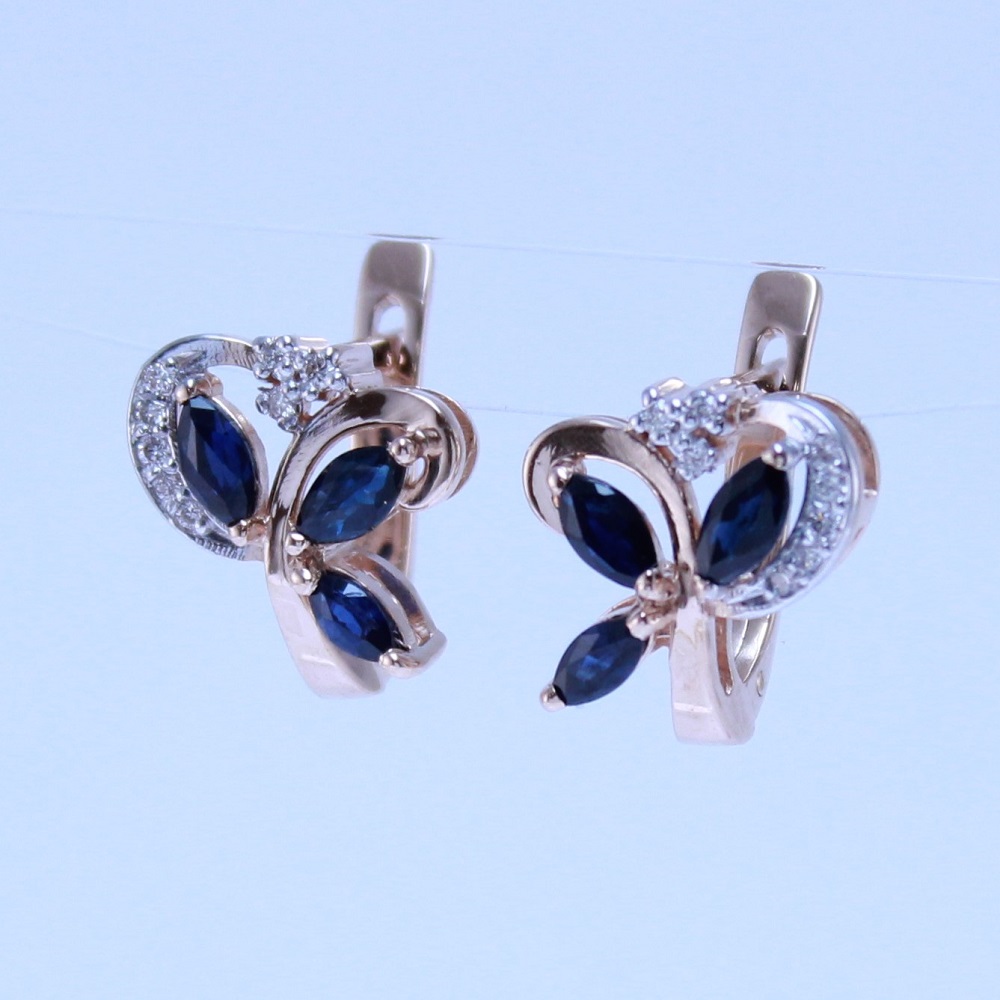 Серьги из красного золота 585 пробы с изящным декором из сапфиров и бриллиантов не оставят женщину равнодушной. Насыщенный блеск притягательных сапфиров, подчеркнутых драгоценными бриллиантами, завораживает взгляд, и станет изысканным акцентом утонченного женственного образа. Тип замка - английский, комфортный и практичный в использовании. Приобретайте серьги по выгодной цене в магазинах Мир Золота.