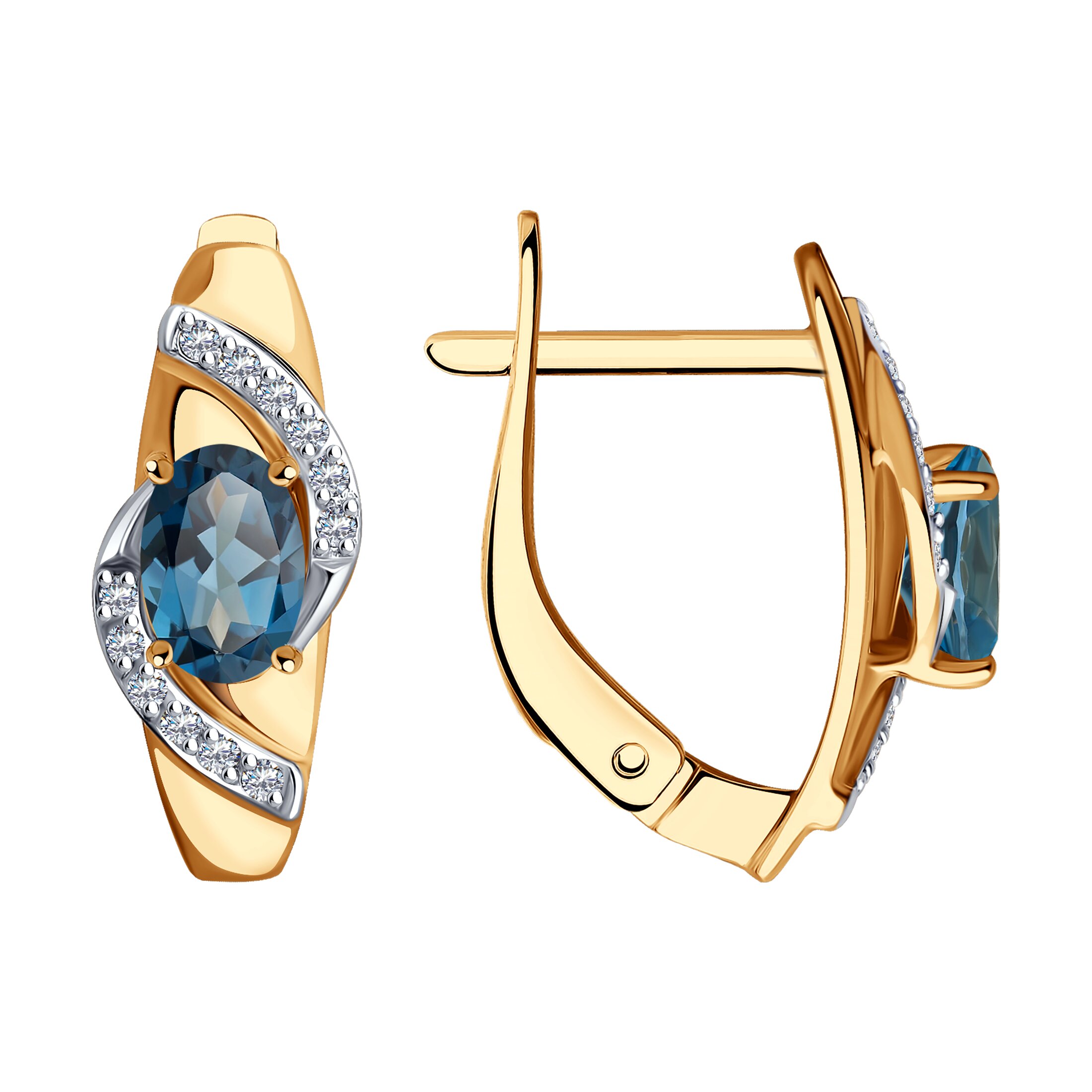 Серьги из красного золота 585 пробы с лондон топазами и прозрачными фианитами подчеркнут привлекательность и очарование владелицы. Украшение с нежным сиянием топазов спокойного глубокого оттенка, выгодно подчеркнутых кристальным блеском фианитов, подходит для разных образов и будет превосходным подарком. Приобретайте ювелирное украшение по выгодным ценам в магазинах Мир Золота.