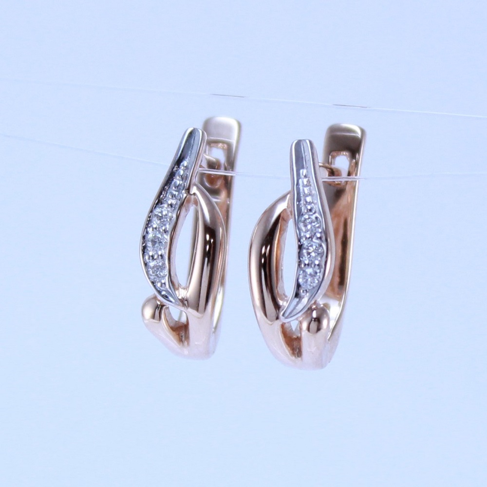 Серьги из красного золота 585 пробы с натуральными бриллиантами станут замечательным подарком и универсальным аксессуаром в женском гардеробе. Изящное украшение с кристальным блеском драгоценных камней внесет изюминку в привычный повседневный образ, и подчеркнет прекрасный вкус владелицы. Приобретайте серьги с практичным английским замком по выгодной цене в магазинах Мир Золота.