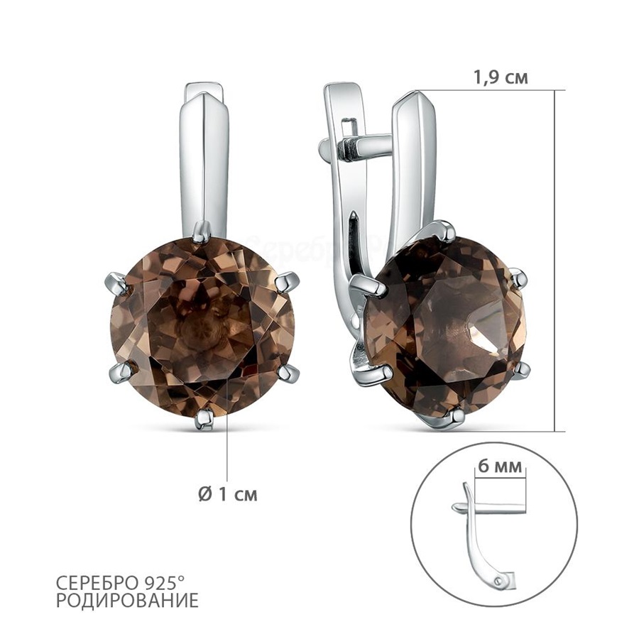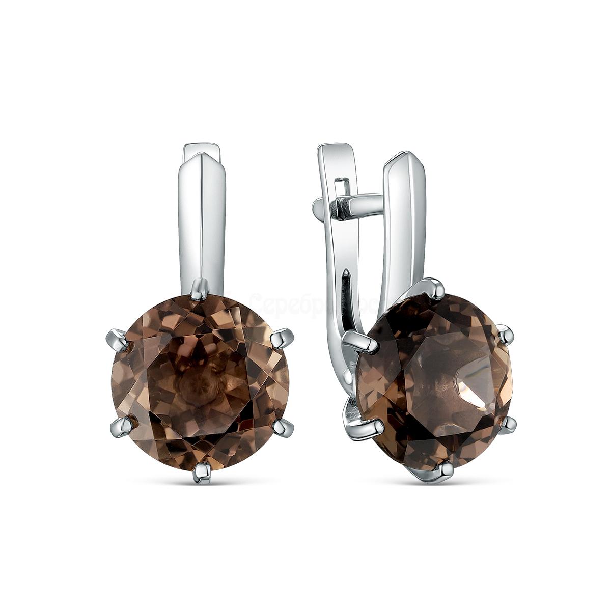 Серьги из родированного серебра 925 пробы с великолепными раухтопазами сделают женский образ более ярким и выразительным. Серебряное украшение с насыщенным блеском натуральных камней кофейного оттенка привлекает внимание, и подчеркнет женственность и изысканный вкус владелицы. Приобретайте серьги с практичным английским замком по выгодной цене в магазинах Мир Золота.