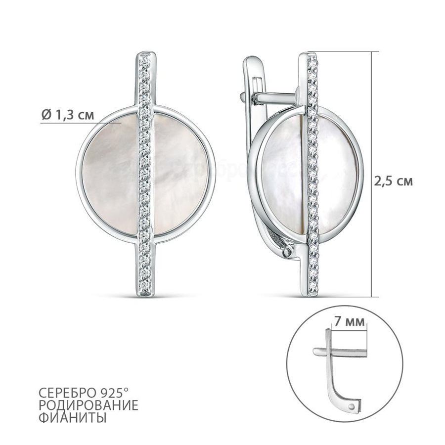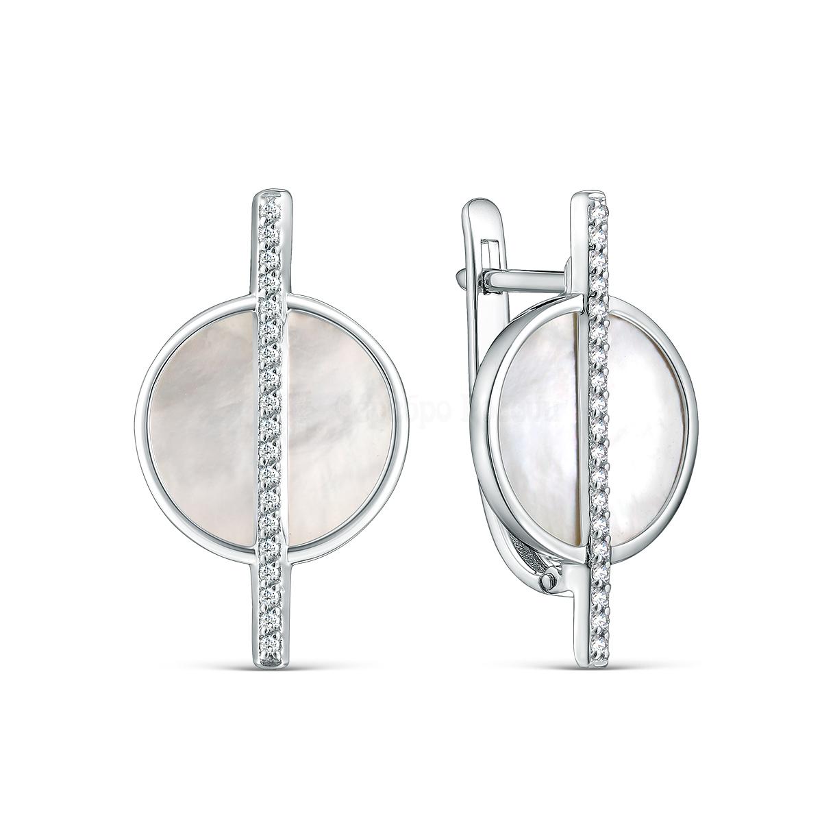 Серьги из родированного серебра 925 пробы с перламутром и дорожками прозрачных фианитов выполнены в актуальном ювелирном дизайне. Стильное украшение с кристальным сиянием камней на фоне нежного перламутра отлично впишется в модные современные образы. Покрытие родием защищает серебро от потемнения, и придает изделию дополнительный блеск. Приобретайте серьги выгодно в магазинах Мир Золота.