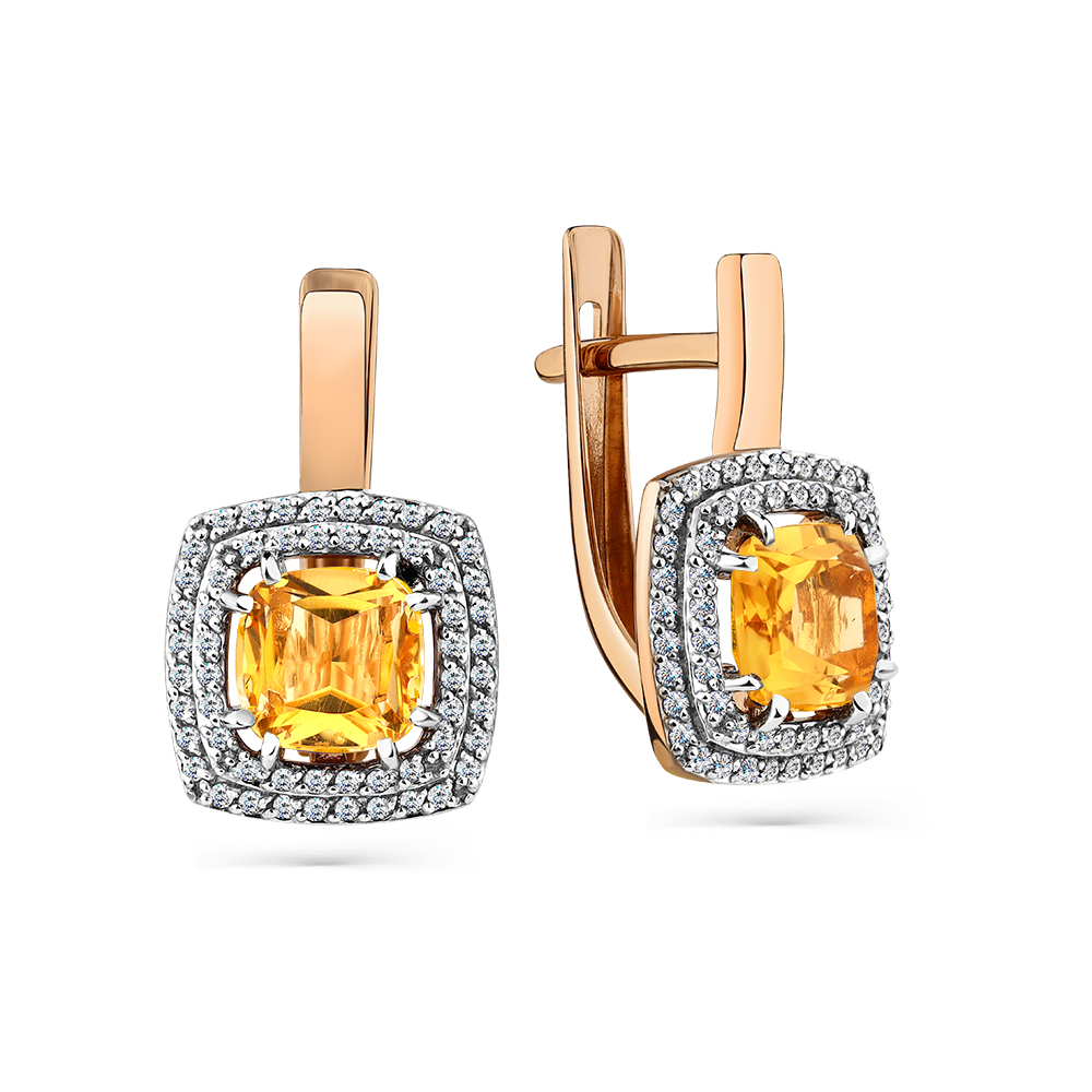—Серьги из красного золота с цитринами и фианитами