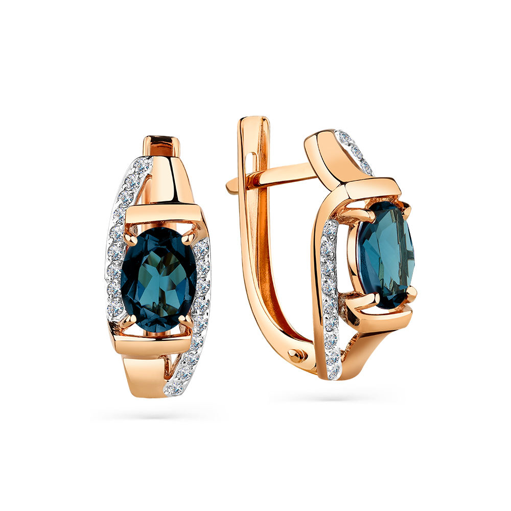 Серьги из красного золота 585 пробы с топазами Лондон и кристальными фианитами смотрятся элегантно и женственно. Полудрагоценные топазы спокойного глубокого оттенка привлекают внимание, дорожки искристых фианитов выгодно подчеркивают их притягательный блеск. Тип замка - английский. Приобретайте ювелирное украшение по выгодной цене в магазинах Мир Золота.
