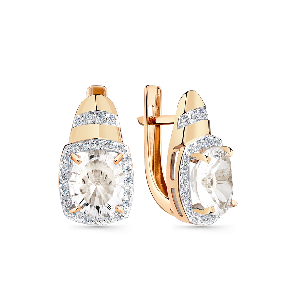 Серьги из красного золота с горным хрусталем и фианитами
