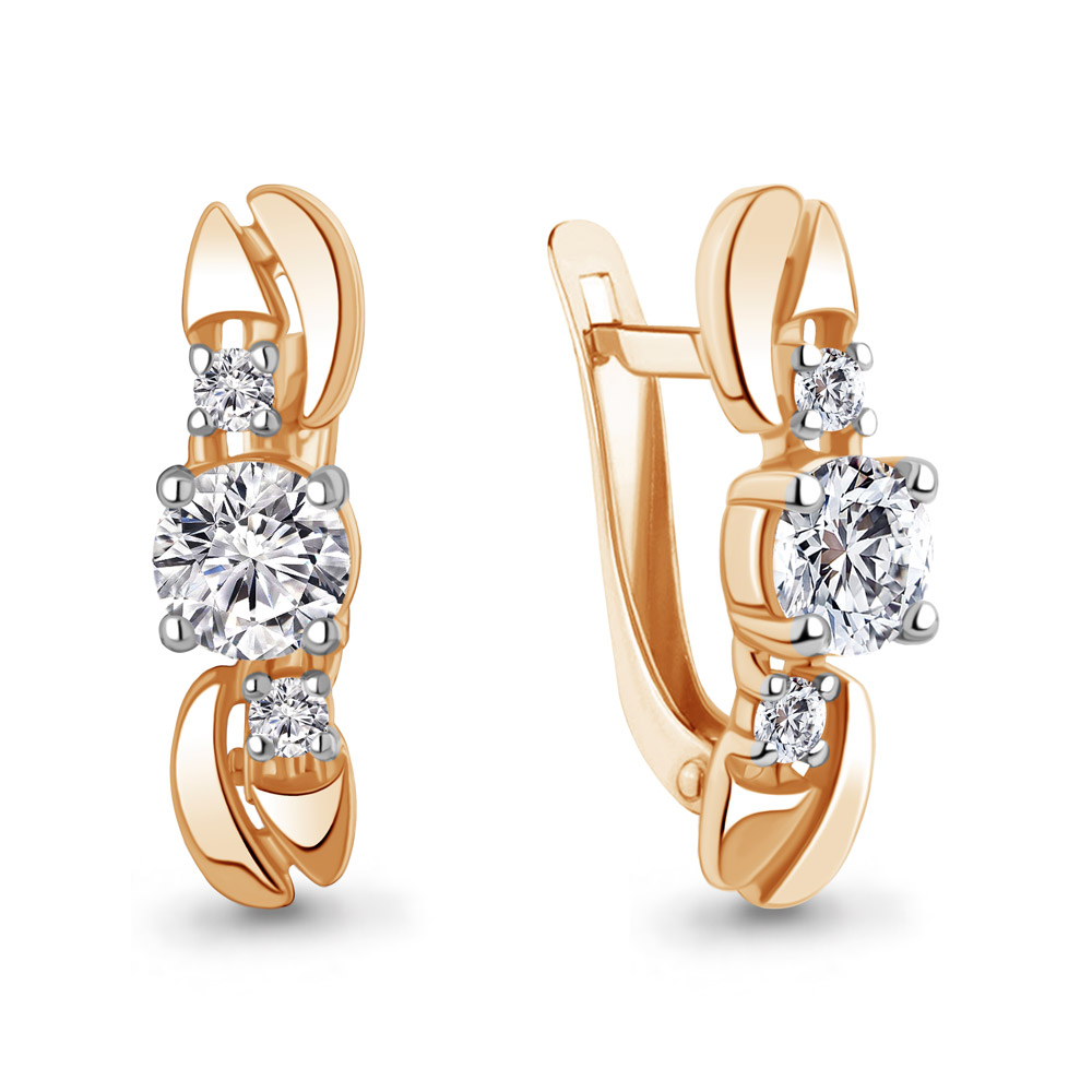 Серьги из красного золота 585 пробы с сияющими фианитами подчеркнут привлекательность и женственность своей обладательницы. Украшение современного дизайна с кристальным блеском камней станет отличным выбором для повседневного образа, и будет замечательным подарком по любому поводу. Приобретайте ювелирное украшение по выгодной цене в магазинах Мир Золота.