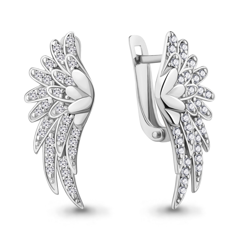 Оригинальные серьги из белого золота 585 пробы декорированы вставками с дорожками кристальных фианитов. Стильное украшение необычного дизайна с россыпью сияющих камней привлекает внимание, и станет ярким акцентом современного образа. Тип замка - английский. Приобретайте ювелирные серьги в подарок по выгодным ценам в магазинах Мир Золота.