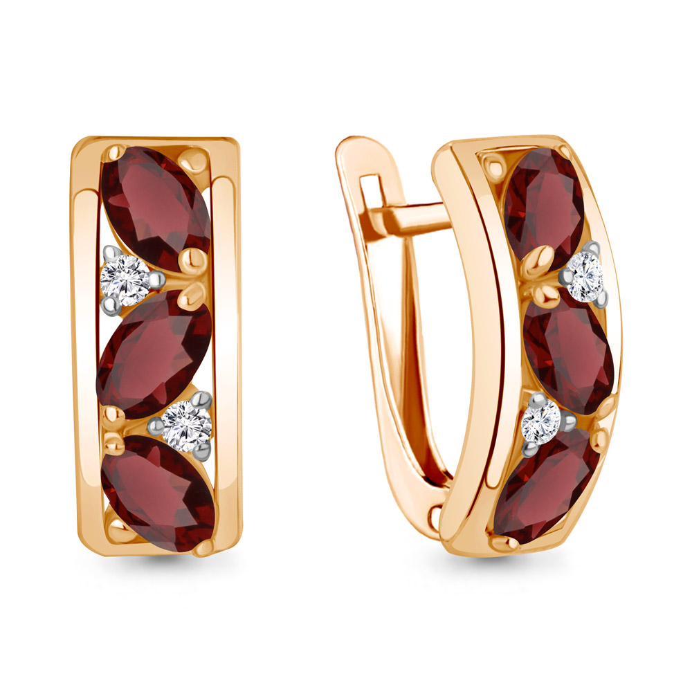 —Серьги из красного золота с гранатами и фианитами