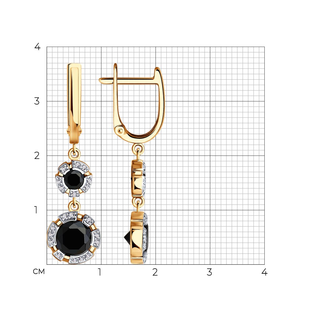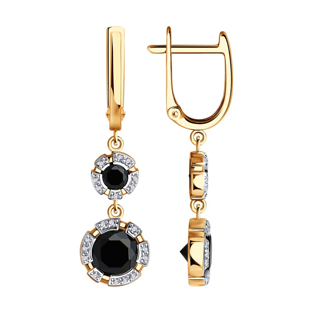 Серьги из красного золота 558 пробы с подвесками с черной шпинелью в обрамлении вставок с сияющими фианитами. Яркий аксессуар с притягательным блеском камней не останется незамеченным, и станет прекрасным дополнением вечерних образов обладательницы. Приобретайте серьги с комфортным английским замком по привлекательной цене в магазинах Мир Золота.