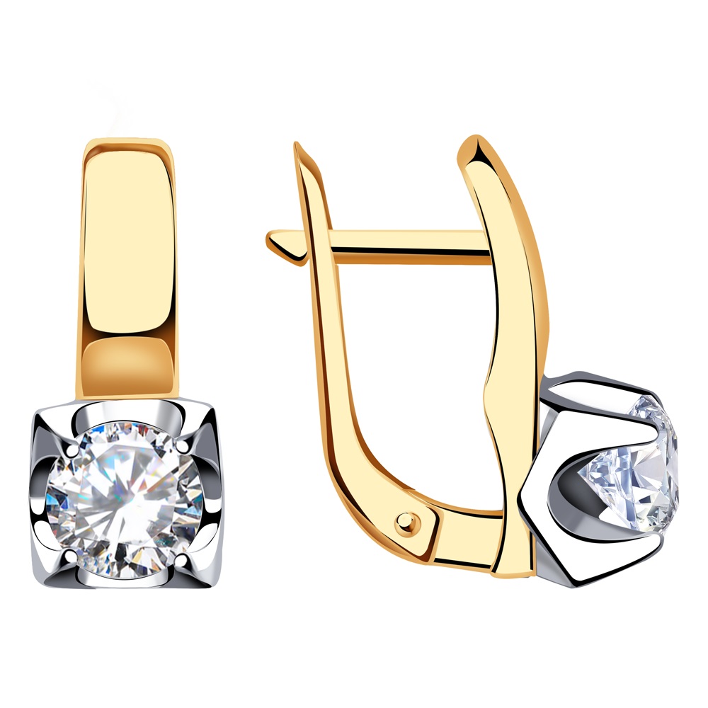 Серьги из красного золота 585 пробы с великолепными фианитами станут изысканным акцентом женственного образа. Эффектная закрепка из белого золота выгодно акцентирует фианиты, и подчеркивает их изумительное кристальное сияние. Украшение привлекательно смотрится, и будет прекрасным подарком для женщины. Приобретайте серьги с английским замком по выгодной цене в магазинах Мир Золота.