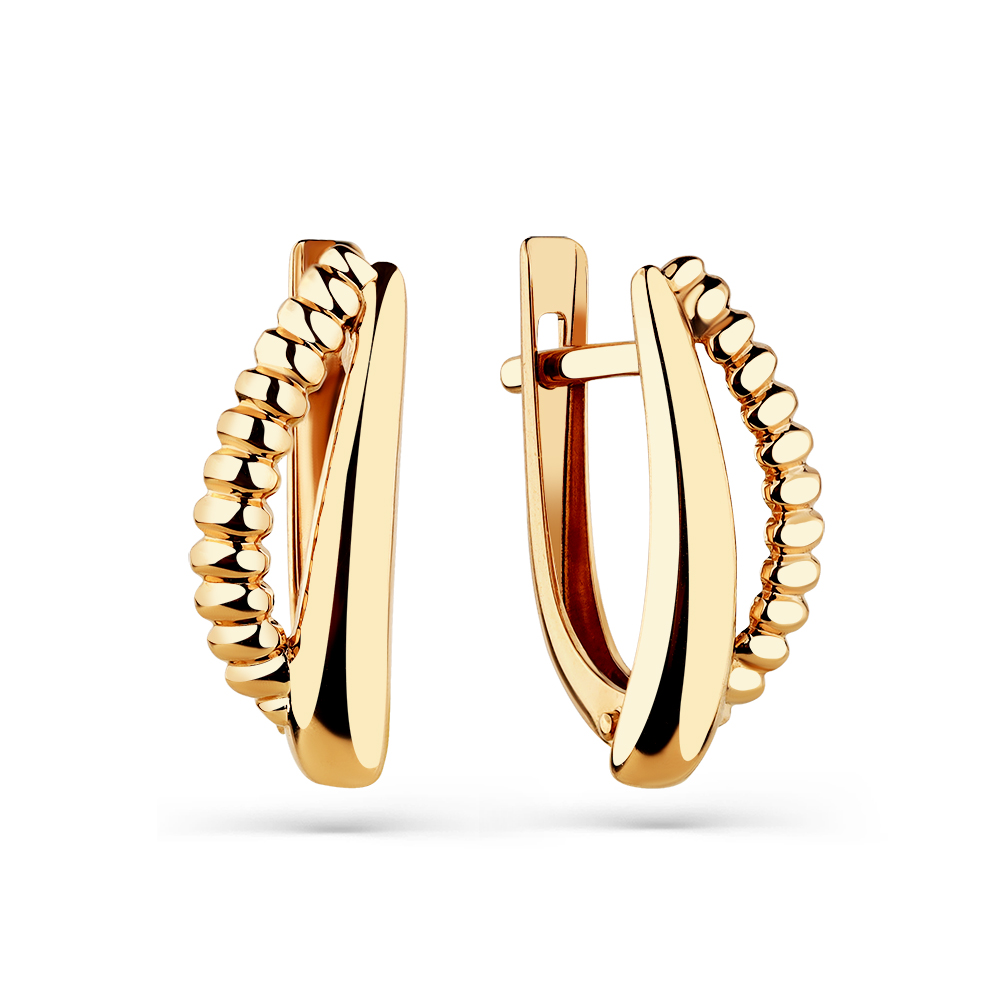 Серьги из красного золота 585 пробы без дополнительных вставок понравятся поклонницам современного минимализма. Украшение нестандартного дизайна стильно смотрится, и станет изюминкой повседневного образа. Тип замка - английский, комфортный и надежный в использовании. Приобретайте серьги для себя или в подарок по привлекательной цене в магазинах Мир Золота.