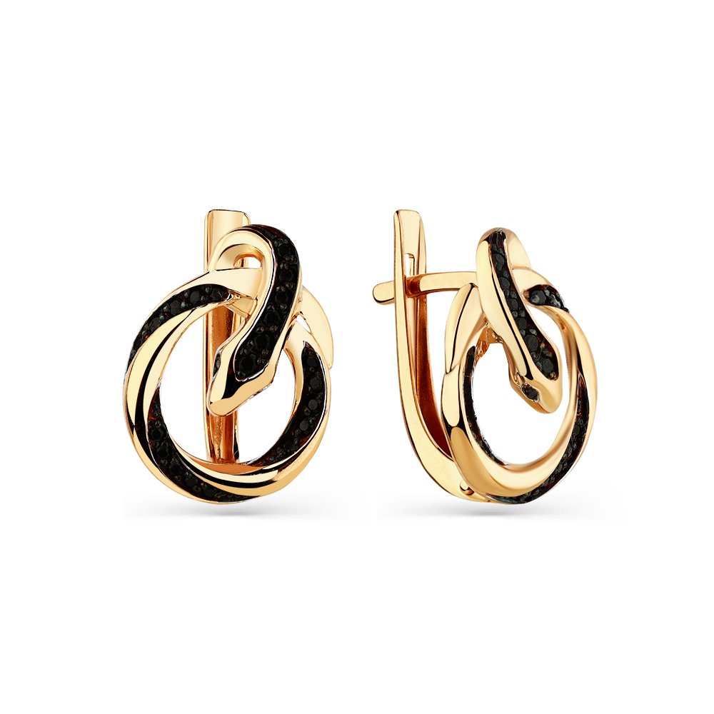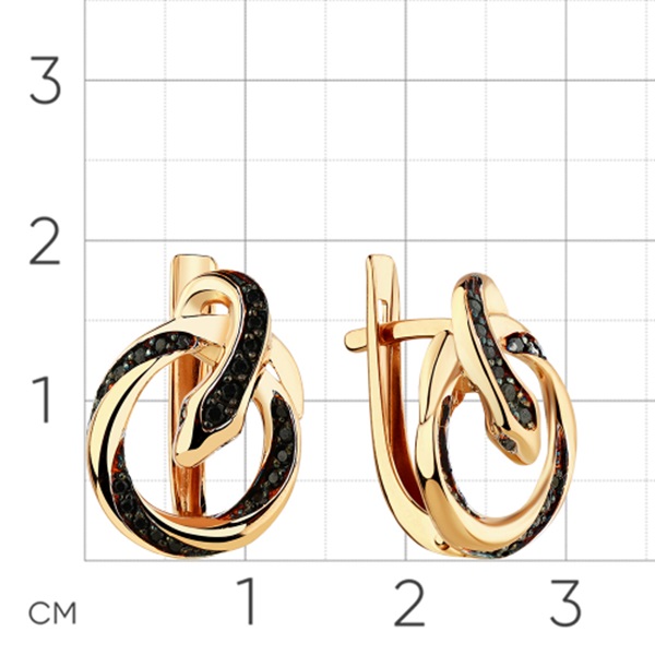 Серьги из красного золота 585 пробы с дорожками черных фианитов внесут нотку изысканности в современный образ владелицы. Стильное украшение в виде изящной змейки с насыщенным блеском камней оригинально смотрится, и подчеркнет утонченный вкус обладательницы. Тип замка - английский. Приобретайте серьги для своей коллекции или в подарок по выгодной цене в магазинах Мир Золота.