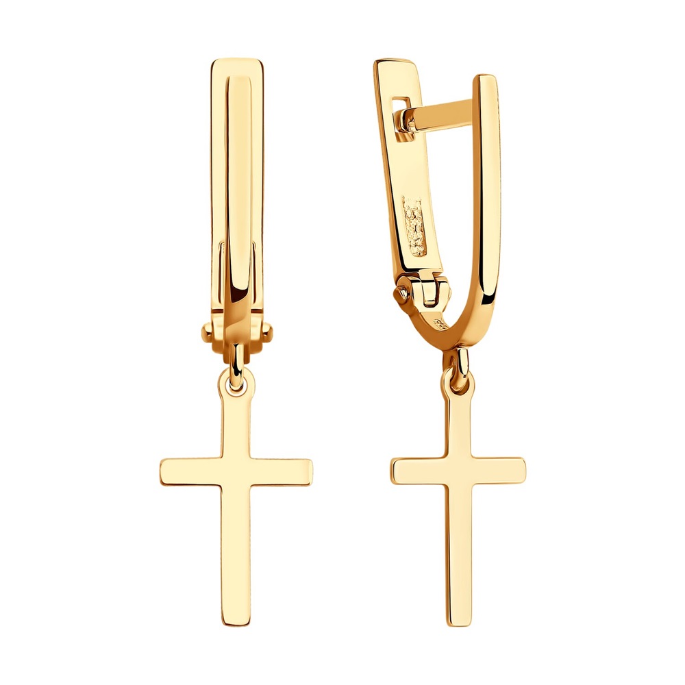 Серьги из красного золота 585 пробы с подвесками в виде декоративных крестиков без дополнительных вставок сделают женский облик более выразительным. Лаконичный, но стильный дизайн отлично впишется в современный образ, и подчеркнет индивидуальность владелицы. Тип замка - английский, комфортный и надежный в использовании. Приобретайте серьги по выгодным ценам в магазинах Мир Золота.