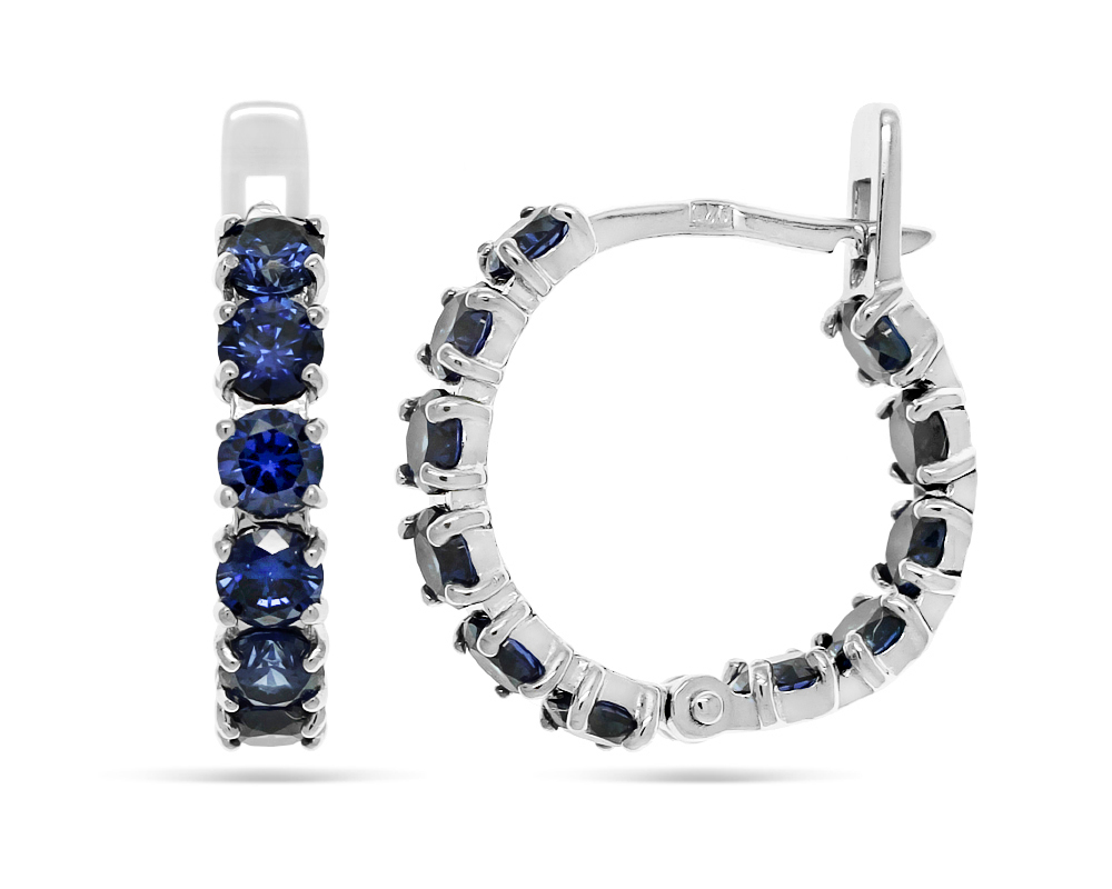Серьги из родированного серебра 925 пробы с дорожками выращенных танзанитов станут заметным элементом современного образа. Актуальный дизайн с ярким блеском синих камней привлекает внимание, и позволит создать завершенный образ, уместный в любой ситуации. Приобретайте ювелирные серьги в подарок по выгодным ценам в магазинах Мир Золота.