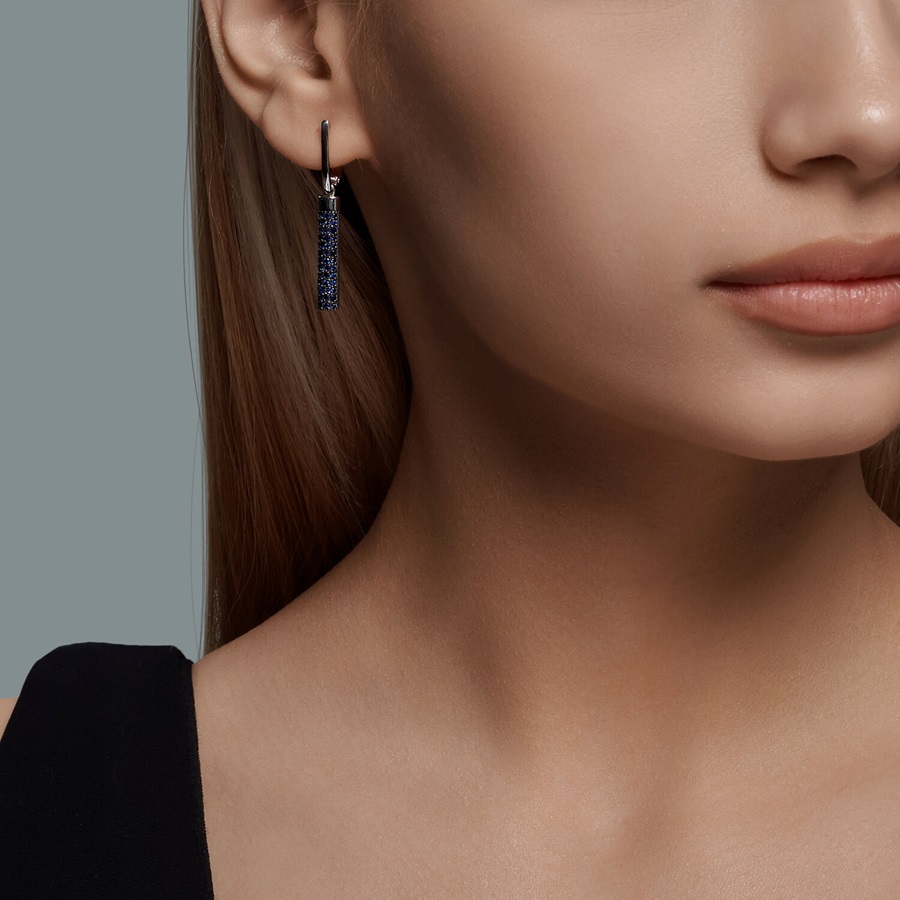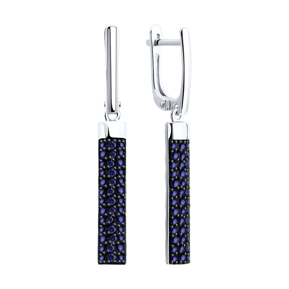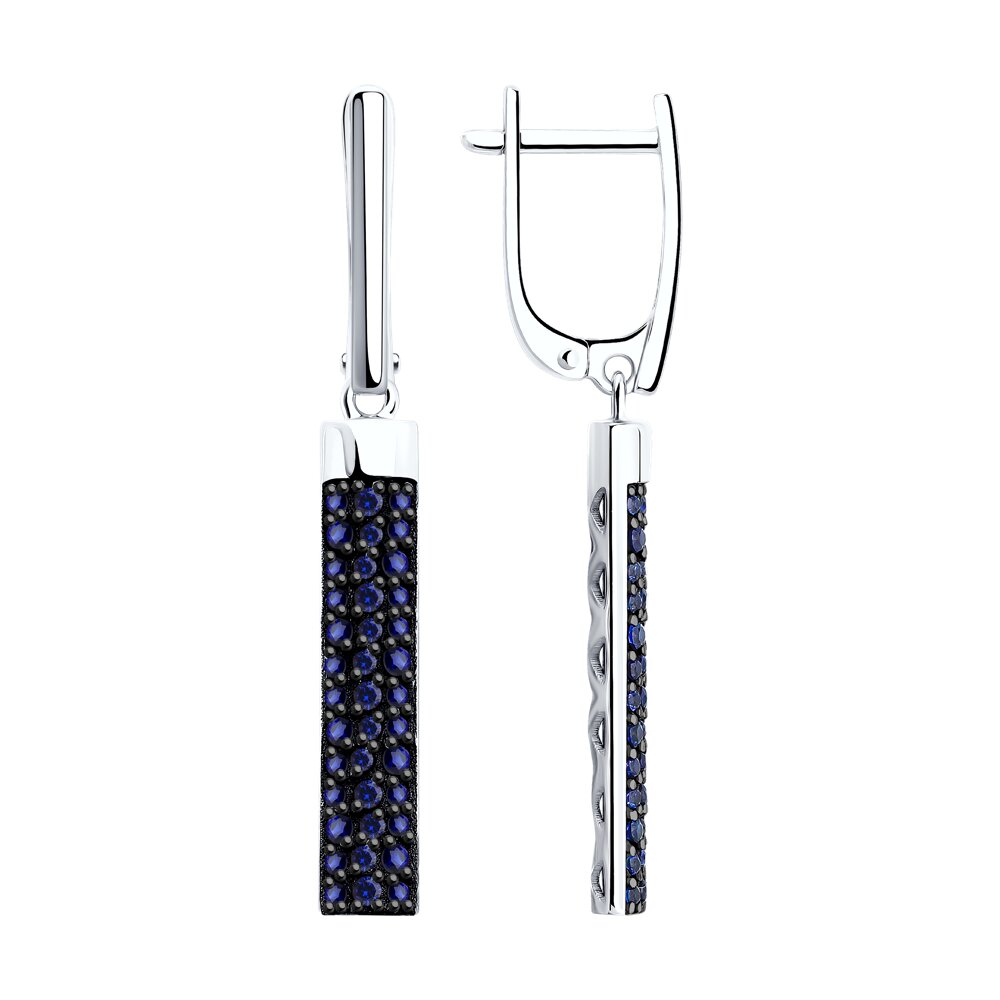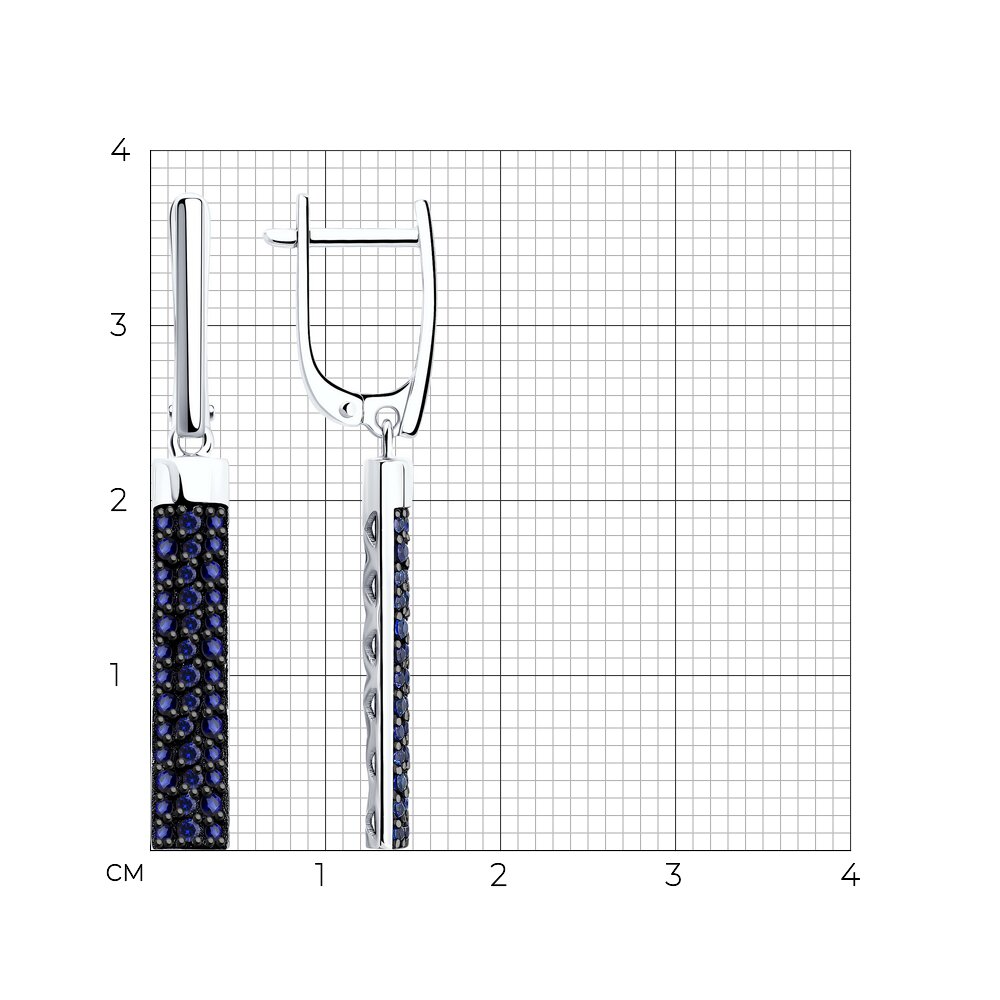 Стильные серьги из белого золота 585 пробы с подвесками с россыпью синих корундов не останутся незамеченными. Актуальный дизайн с ярким сиянием ювелирных камней привлекает внимание. Украшение эффектно смотрится, и станет идеальным завершением современного образа. Приобретайте ювелирное украшение в подарок по выгодным ценам в магазинах Мир Золота.