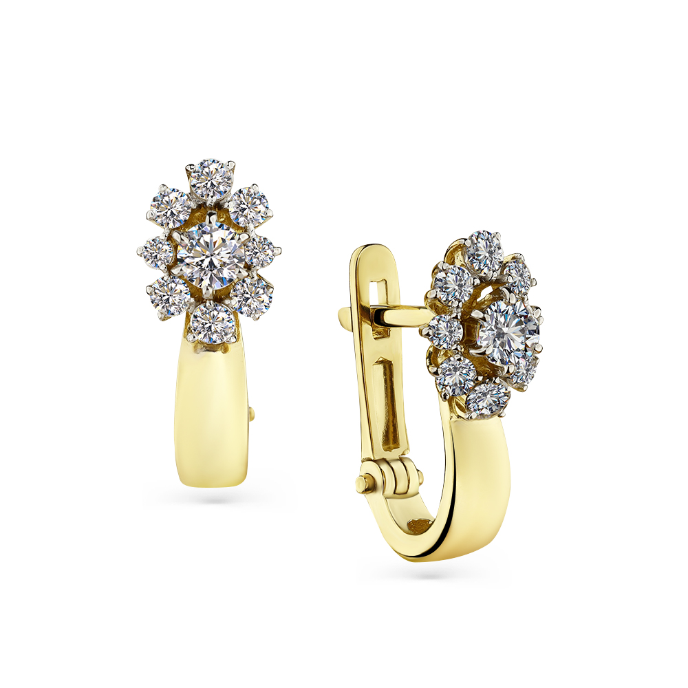 Серьги из желтого золота 585 пробы, украшенные сияющими фианитами, станут изюминкой женственного образа. Очаровательные серьги с кристальным блеском камней привлекательно смотрятся, и будут прекрасным выбором для подарка. Тип замка: английский, комфортный и надежный в использовании. Приобретайте серьги по выгодным ценам в магазинах Мир Золота.