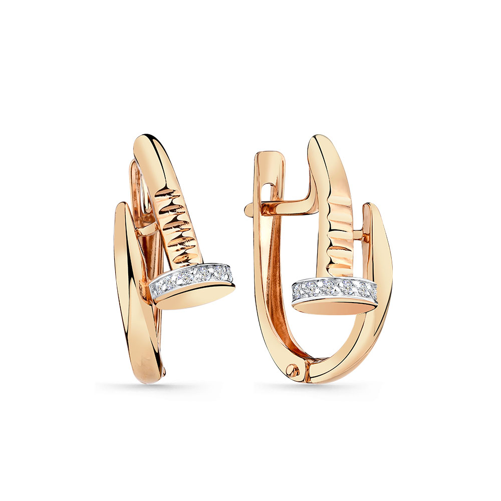 Стильные серьги из красного золота 585 пробы с дорожками сверкающих фианитов выполнены в популярном ювелирном дизайне. Оригинальное украшение станет актуальным дополнением модного образа, и подчеркнет современный стиль и индивидуальность владелицы. Приобретайте серьги на английском замке по привлекательной цене в магазинах Мир Золота.