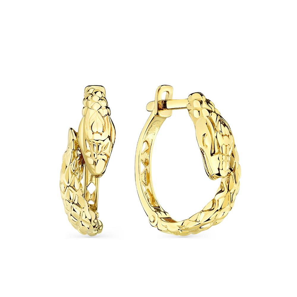 Эффектные серьги с образом змеи, выполненные из желтого золота 585 пробы, без дополнительных вставок понравятся поклонницам оригинальных ювелирных украшений. Серьги необычного дизайна привлекают внимание, и подчеркнут изысканный вкус и индивидуальность владелицы. Приобретайте украшение по привлекательной цене в магазинах Мир Золота.