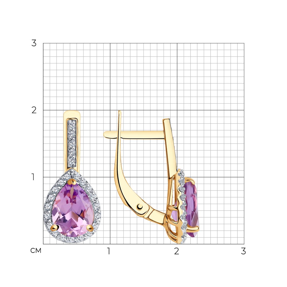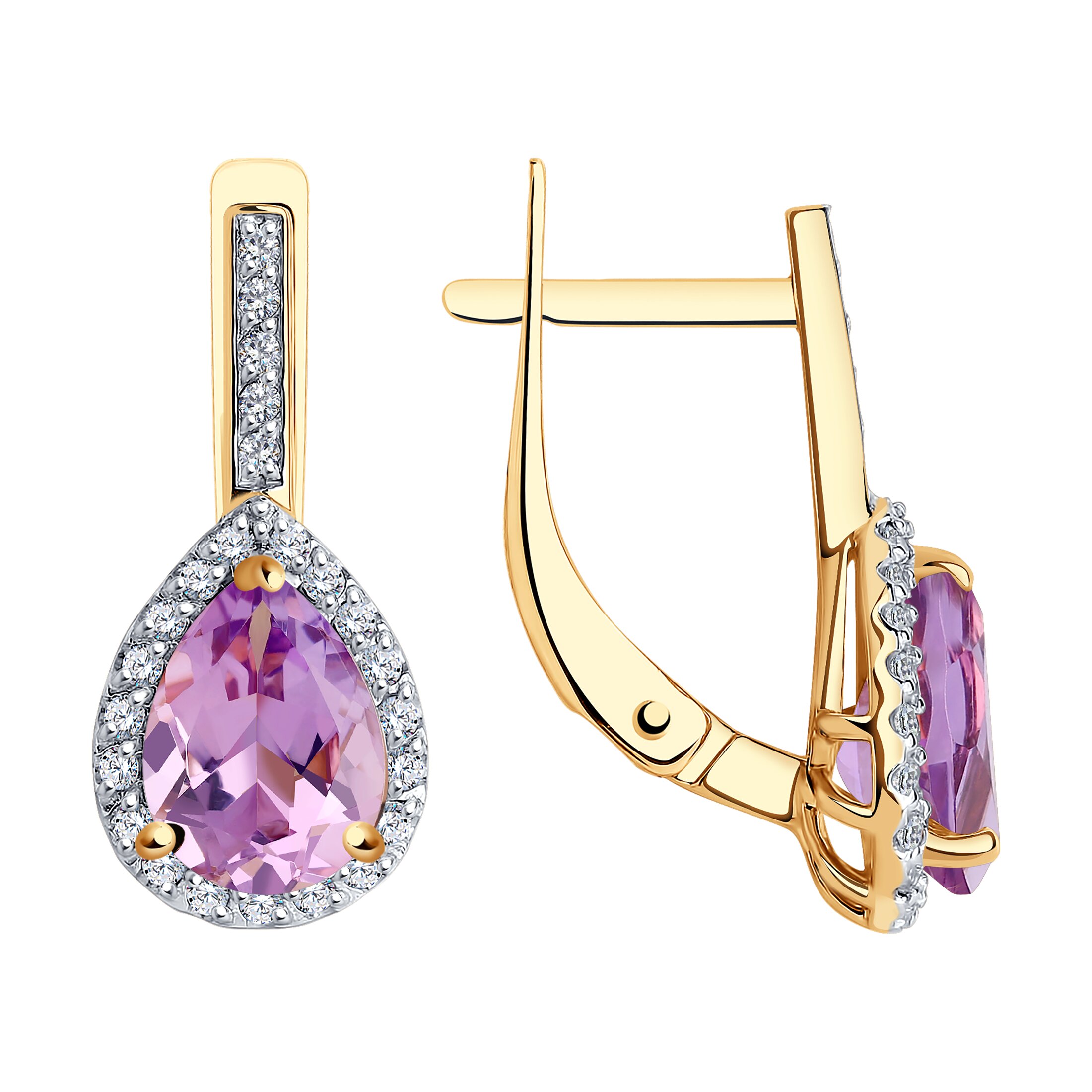 Великолепные серьги выполнены из красного золота 585 пробы с нежным блеском натуральных аметистов и искристых фианитов эффектно подчеркнут красоту и женственность владелицы. Серьги очень красиво и нарядно смотрятся, и станут безупречным завершением обворожительного женского образа. Приобретайте ювелирное украшение в подарок по выгодной цене в магазинах Мир Золота.