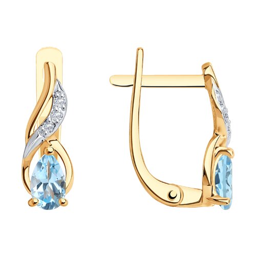 Восхитительные серьги выполнены из красного золота 585 пробы и украшены натуральными топазами и фигурными вставками с фианитами. Серьги смотрятся очень изящно и очаровательно, и станут изумительным украшением нежного образа. Приобретайте ювелирное украшение для себя или для идеального подарка, по выгодной цене в магазинах Мир Золота.