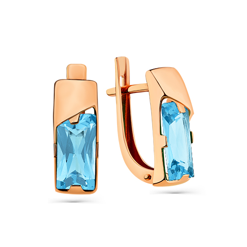 Женские серьги с голубыми топазами swiss выполнены в сдержанном дизайне из красного золота 585 пробы. Украшение с выразительными топазами огранки Багет смотрится стильно и элегантно, благородное золото выгодно подчеркивает удивительную красоту и яркое сияние камней. Эффектный аксессуар отлично впишется в повседневные, деловые и вечерние образы. Приобретайте украшение по выгодной цене в магазинах Мир Золота.