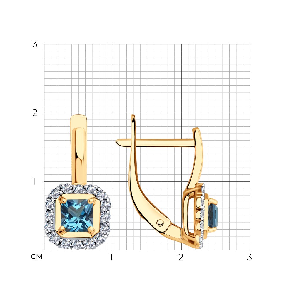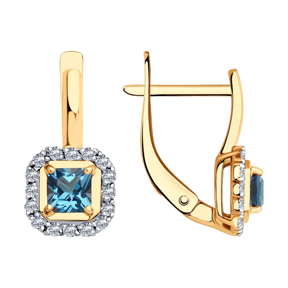 Серьги из красного золота с топазами и фианитами