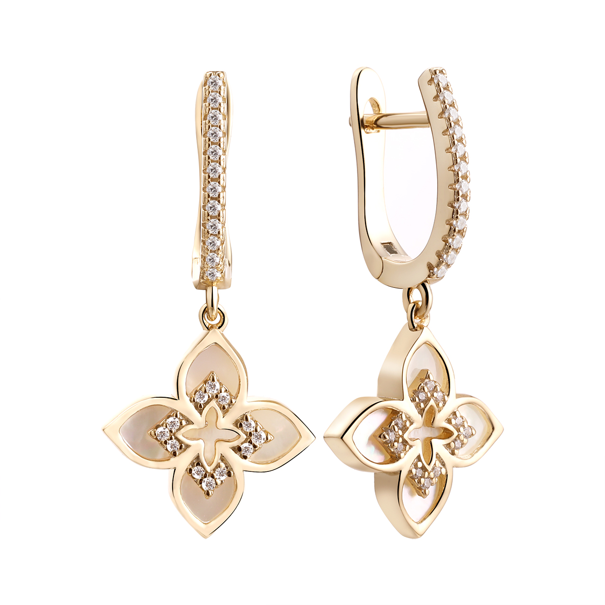—Серьги из позолоченного серебра с перламутром и фианитами