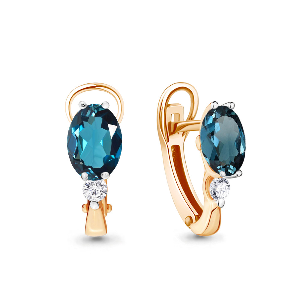 Привлекательные серьги с эффектными Лондон топазами и капельками искристых фианитов выполнены из красного золота 585 пробы. Насыщенный блеск чудесных топазов завораживает взгляд, кристальные фианиты выгодно подчеркивают их неповторимую красоту. Дополните свой идеальный образ изысканным акцентом, покупайте украшение выгодно в магазинах Мир Золота.