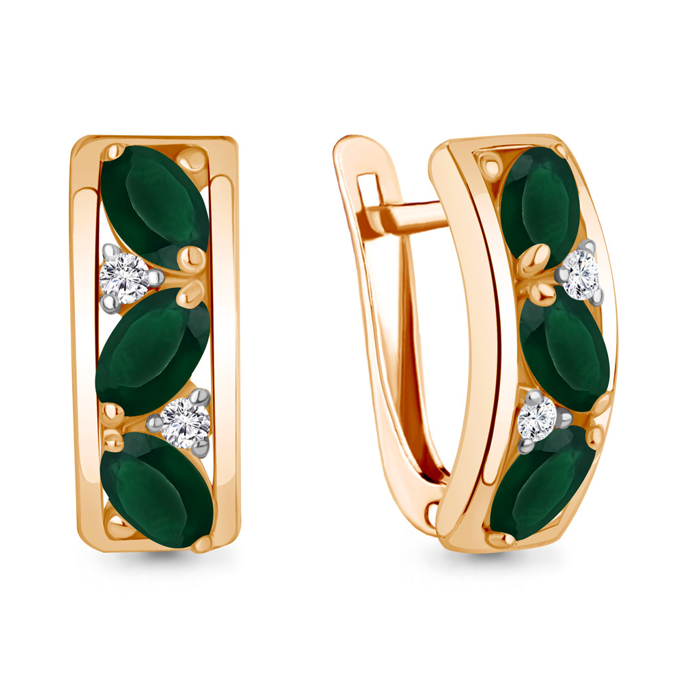 Элегантные серьги из красного золота 585 пробы с зелеными агатами и кристальными фианитами отлично впишутся в гардероб современной леди. Яркий насыщенный блеск зеленых агатов, подчеркнутых сияющими фианитами, привлекает внимание, и делает украшение заметным акцентом современного образа. Приобретайте серьги с английским замком по выгодной цене в магазинах Мир Золота.