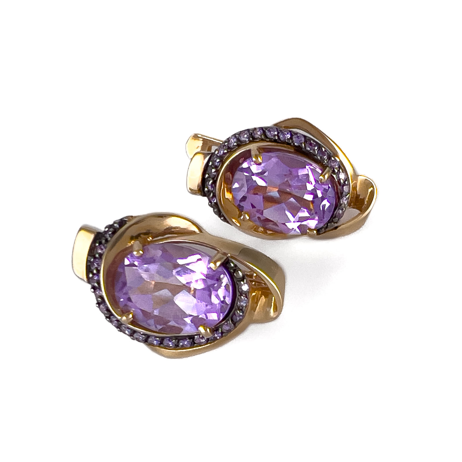 Золотые серьги с фиолетовым аметистом сочетают в себе классику и современные тенденции ювелирного дизайна. Эффектно выстроенные изящные фианиты символизируют чистоту и непорочность, невинность и целомудрие. Статусные серьги с натуральным камнем идеально подчеркнут хрупкость и великолепный вкус их обладательницы. Украшение станет идеальным подарком.