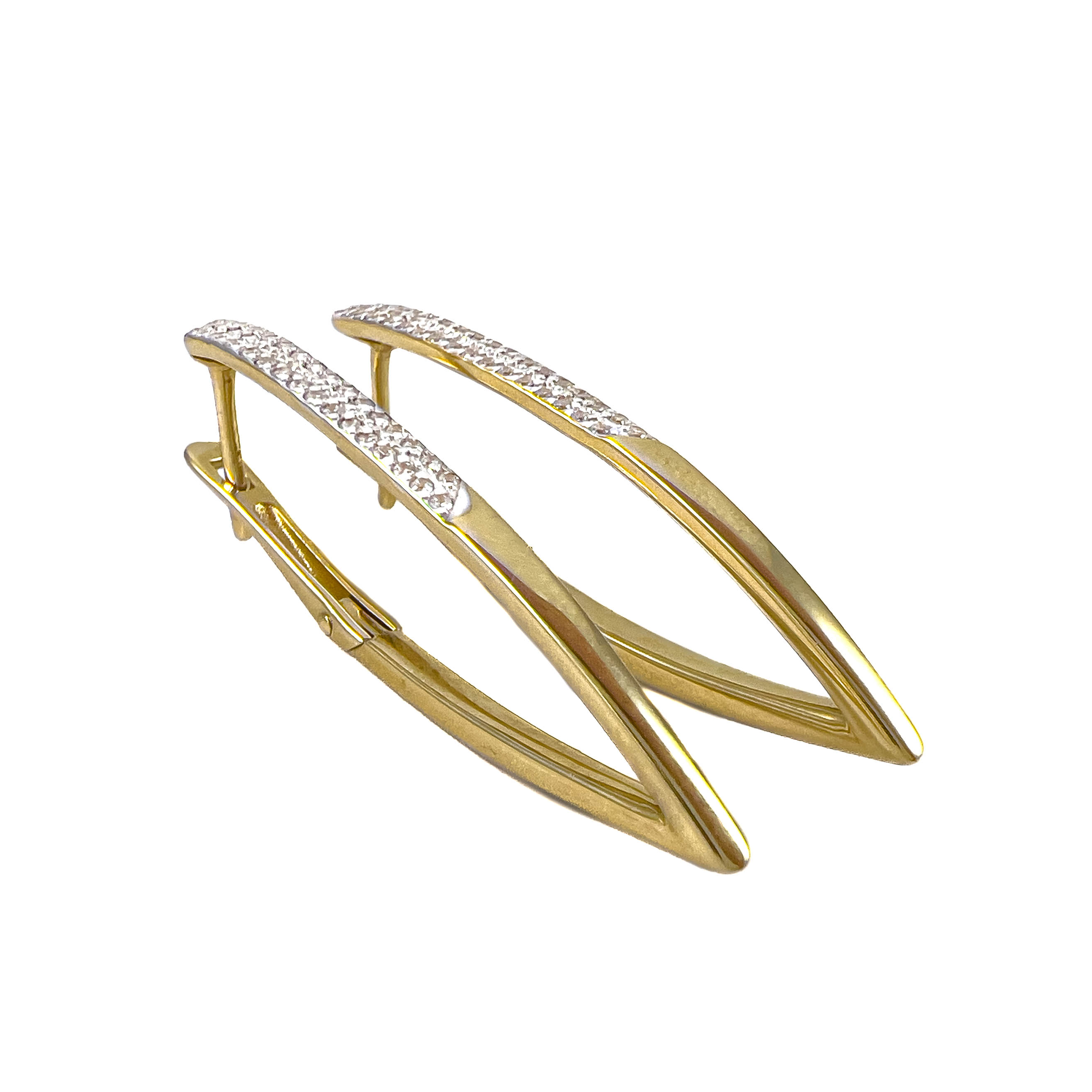 Причудливые оригинальные женские серьги из желтого золота 585 пробы, украшенные притягательным паве прозрачных циркониев, подойдут для торжественного выхода. Наполненные сиянием, эти серьги приобретает особый смысл и погружают в мир непревзойденной роскоши. Покупайте золотые украшения исключительного качества по привлекательной цене в магазинах Мир Золота.
