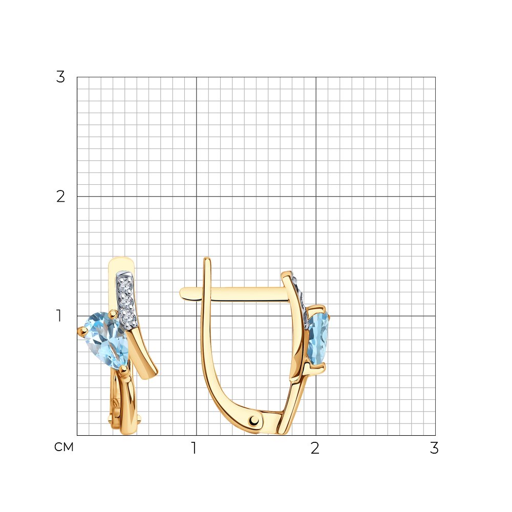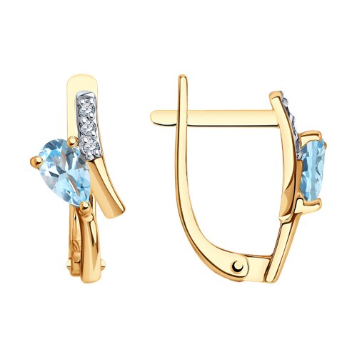 Миниатюрные серьги с натуральными топазами и фианитами выполнены в современном дизайне из красного золота 585 пробы. Изящное украшение с привлекательным блеском чудесных топазов станет заметным акцентом и универсальным аксессуаром для любого выбранного образа. Приобретайте ювелирное украшение в подарок по выгодной цене в магазинах Мир Золота.