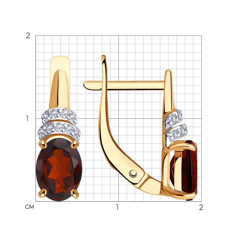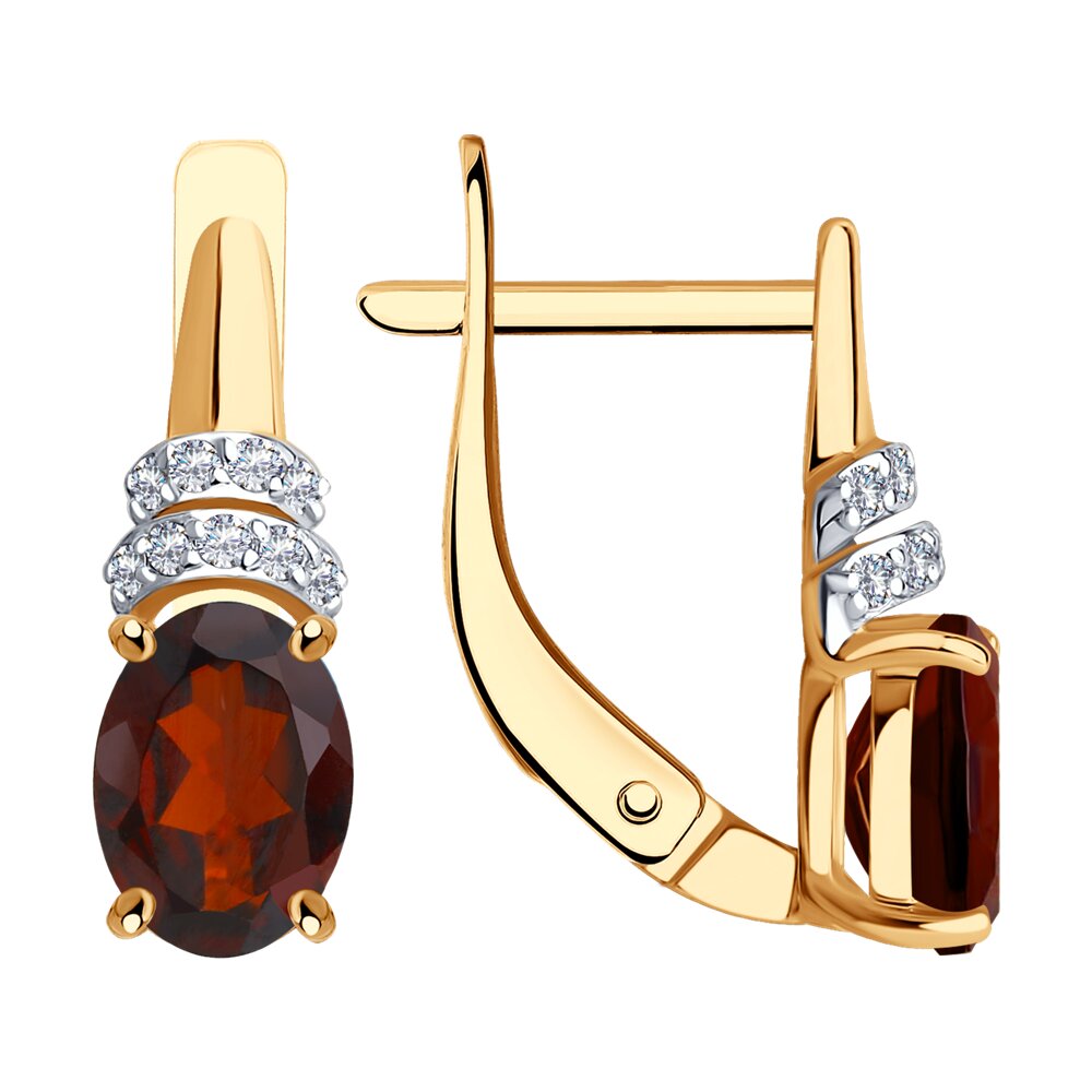 —Серьги из красного золота с гранатами и фианитами
